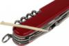 Нож, малый нож, консервный нож, открывалка, штопор, 3 отвертки, сниматель изоляции, шило(кернер), пинцет, кольцо для ключей, крючок, ножницы, лупа 8х, зубочистка.
