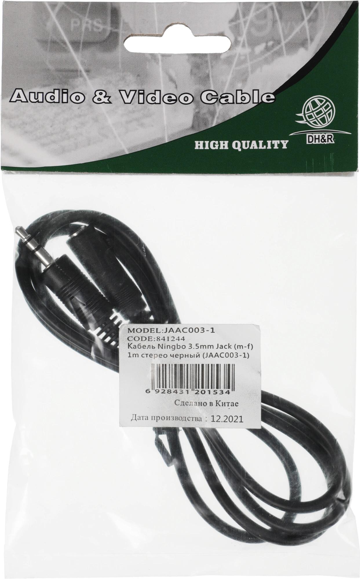 Кабель аудио Ningbo JAAC003-1 Jack 3.5 (m)/Jack 3.5 (f) 1м. черный