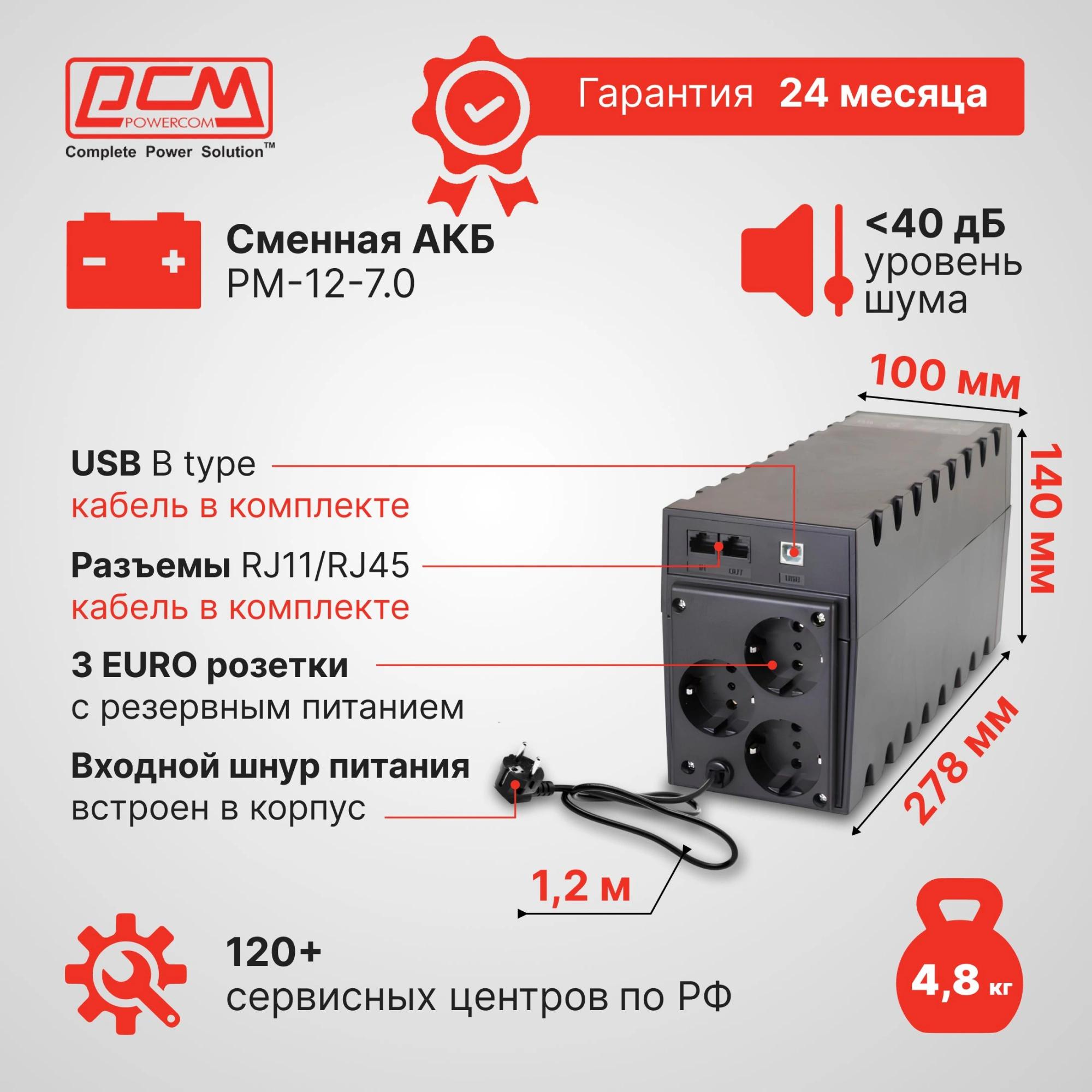 защита сети (порт RJ-45), защита телефона (порт RJ-11), от глубокого разряда батареи, от короткого замыкания, от перегрузки