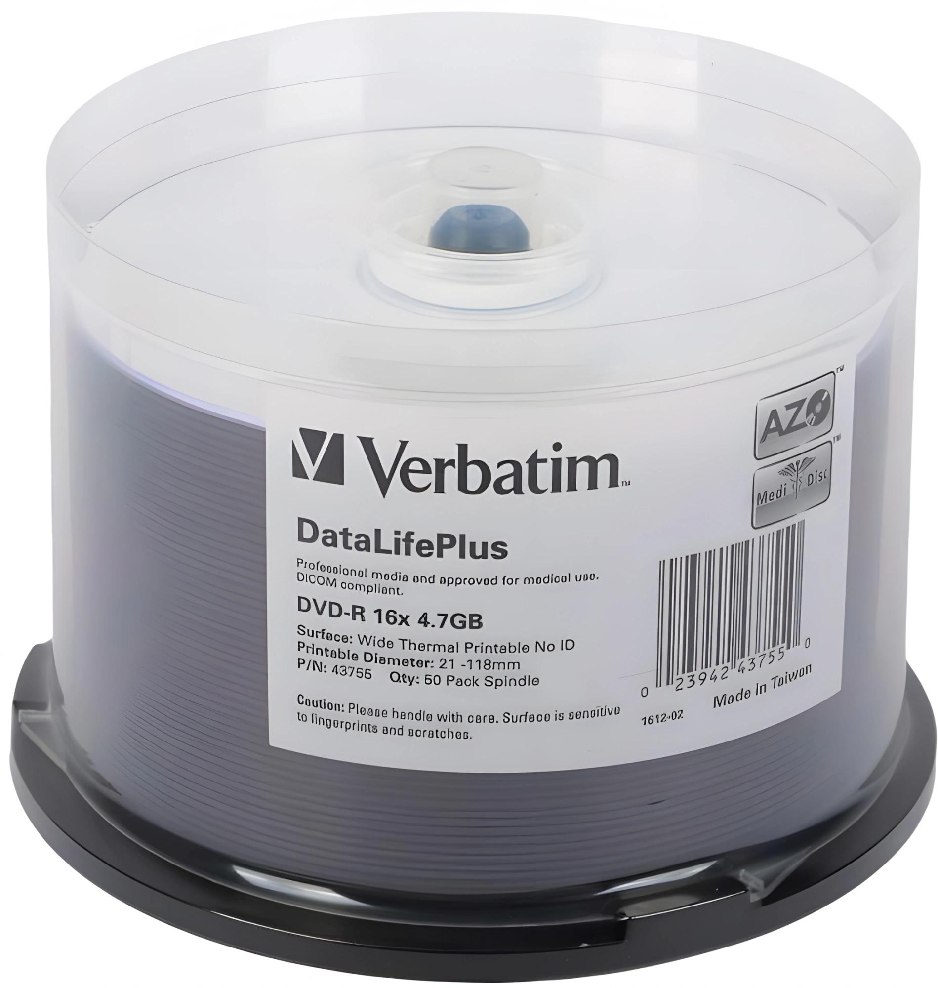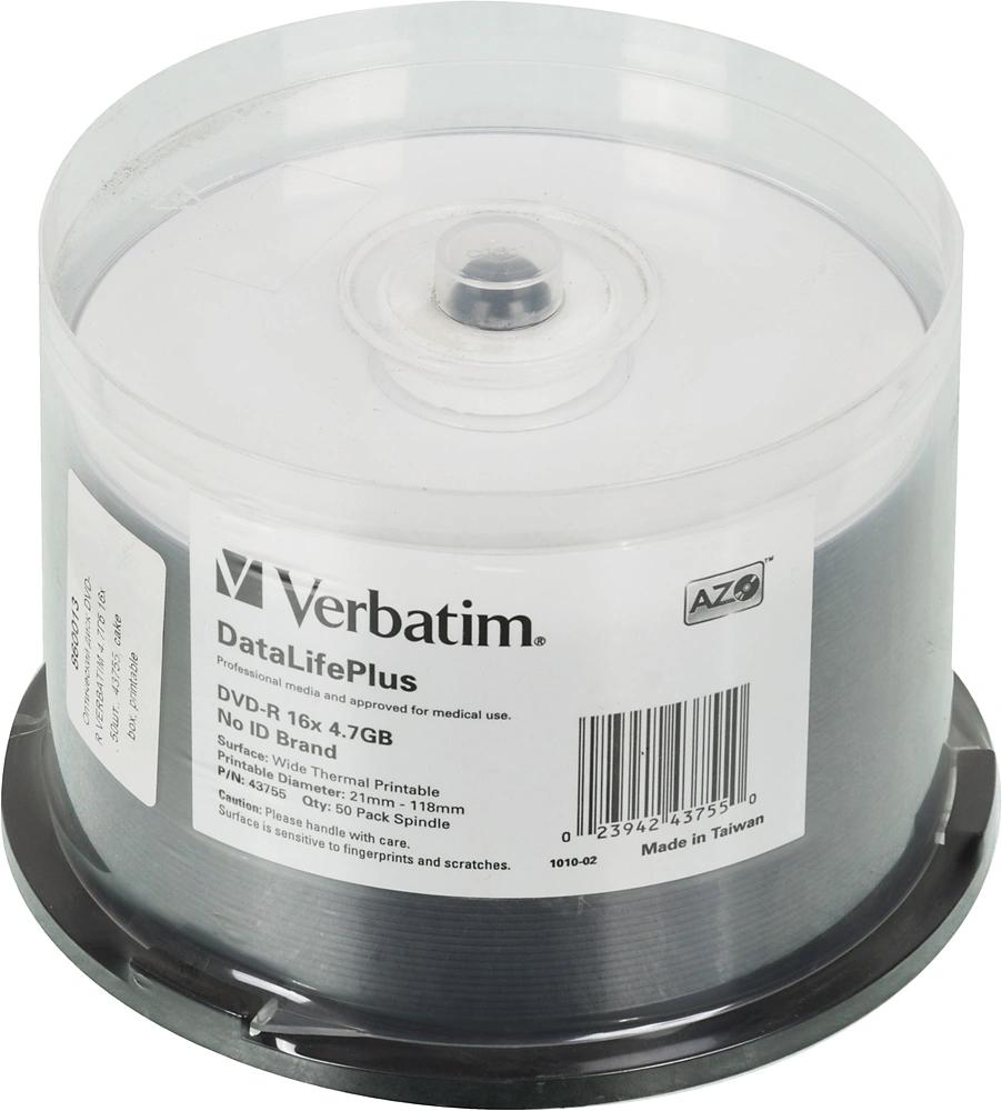 Диск DVD-R Verbatim 4.7Gb 16x Cake Box (50шт) Printable (43755)