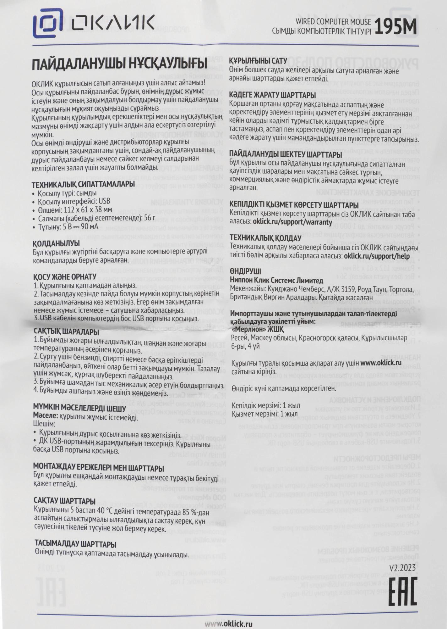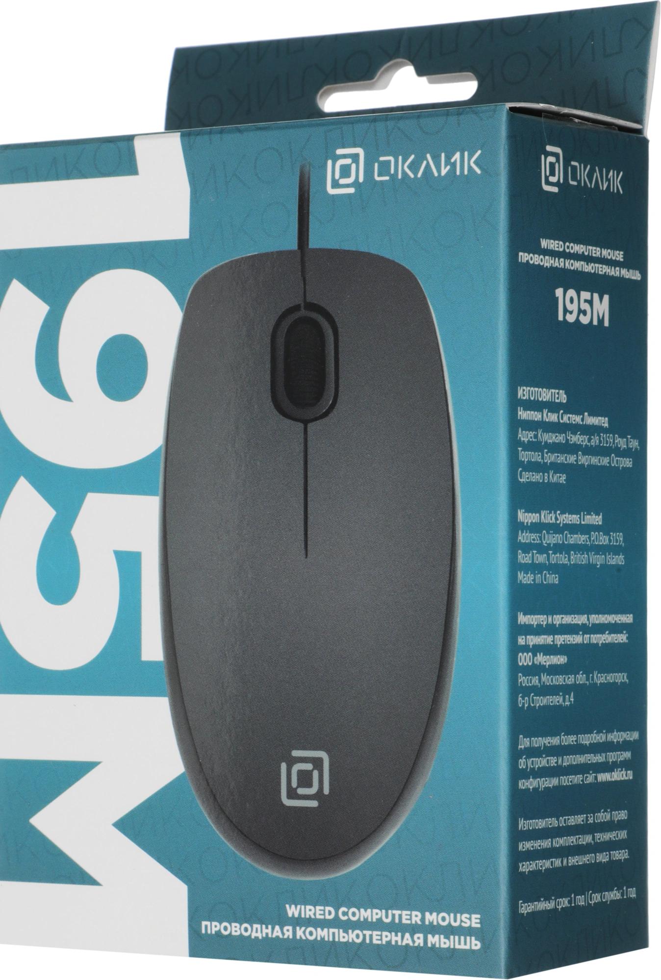 Мышь Оклик 195M for business черный оптическая 1200dpi USB для ноутбука 3but (M218 Black)
