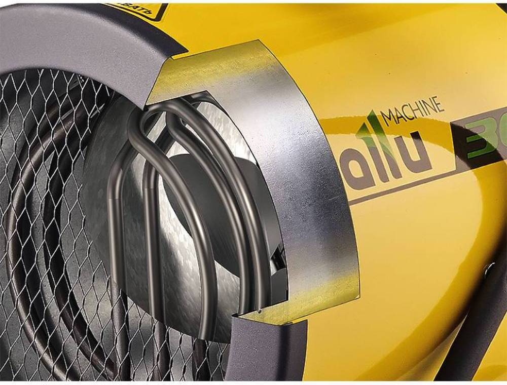 Вытянутый корпус для направленного воздушного потока. Двойные стенки исключают сильный нагрев поверхности корпуса. Возможность регулировки угла наклона. Две ступени мощности и режим вентиляции без нагрева. Антивандальное износостойкое покрытие опор и ободов.