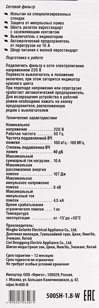Сетевой фильтр Buro 500SH-1.8-W 1.8м (5 розеток) белый (коробка)