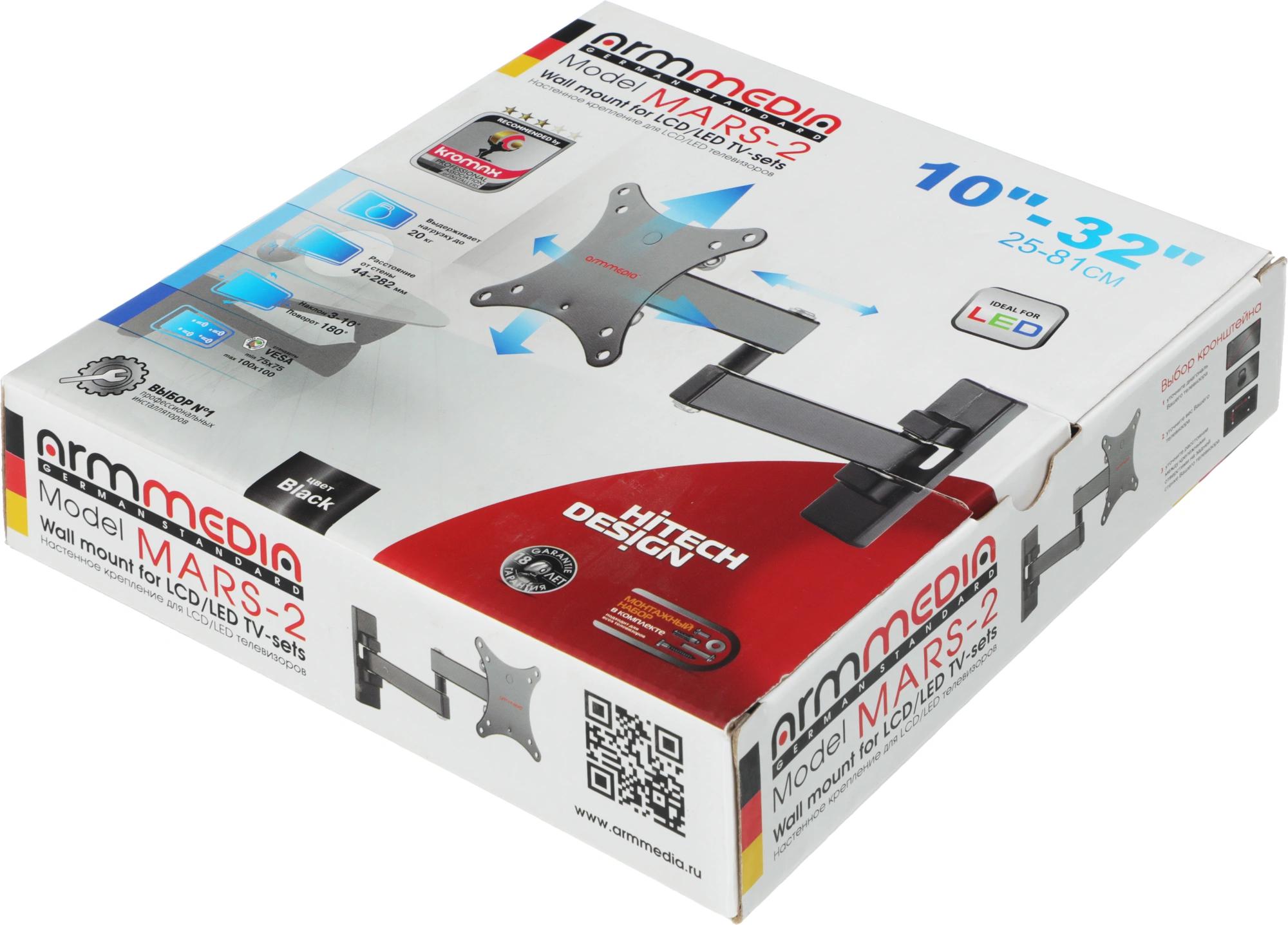 Кронштейн для телевизора Arm Media MARS-2 черный 10"-32" макс.20кг настенный поворот и наклон