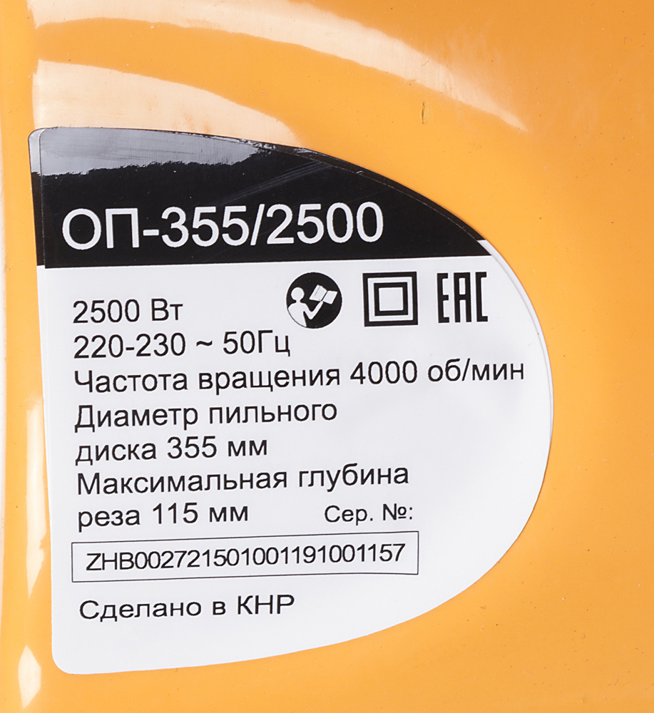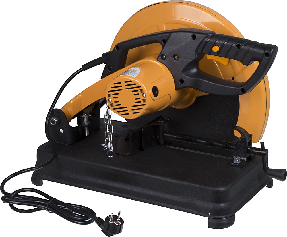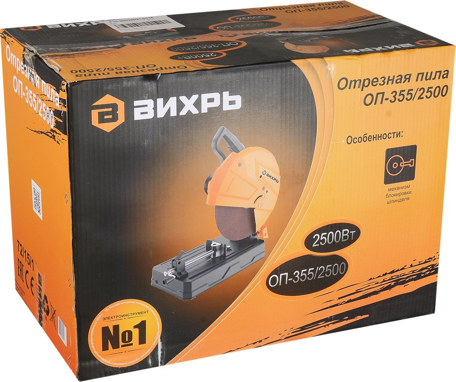 Отрезная пила, инструмент для фиксации диска, запасной комплект щеток, паспорт, упаковка.