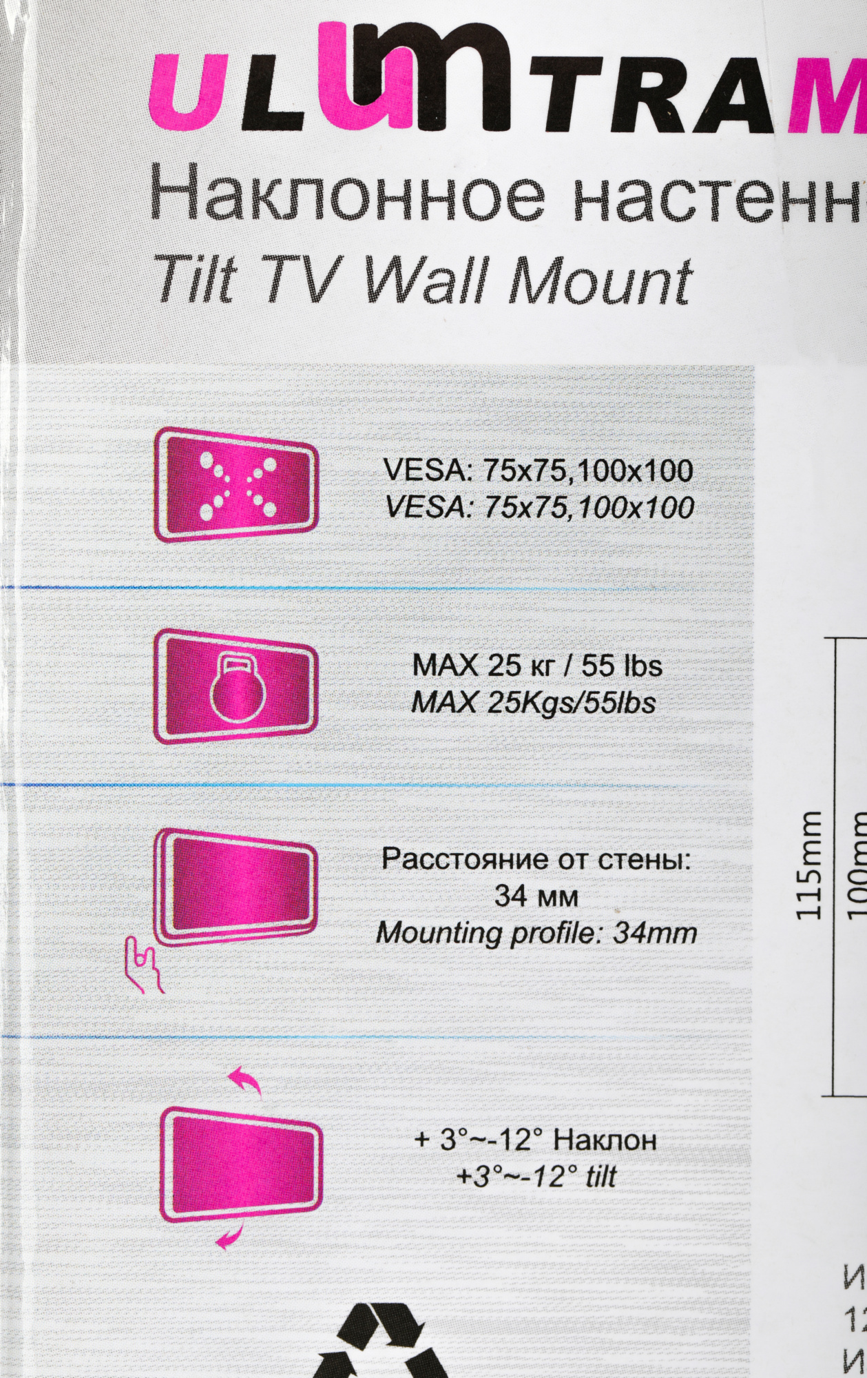 Кронштейн для телевизора Ultramounts UM830T черный 13"-27" макс.25кг настенный наклон