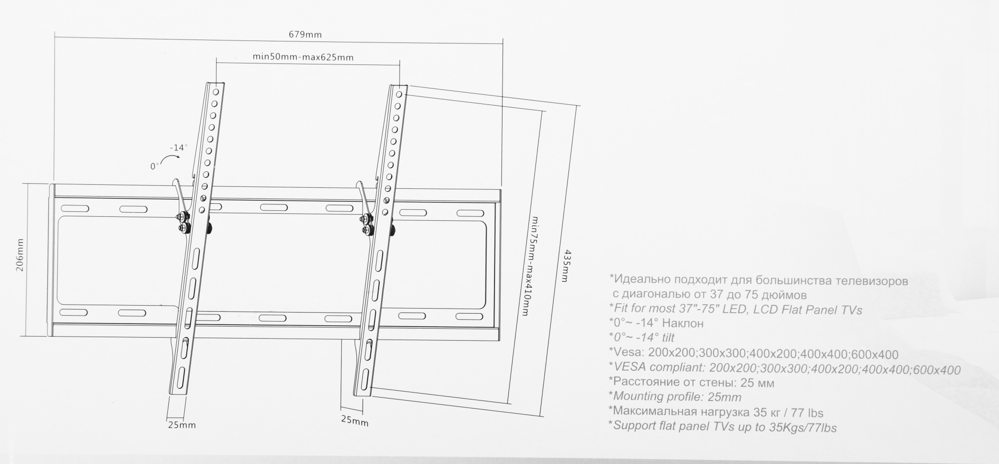 Подходит для телевизоров c диагональю