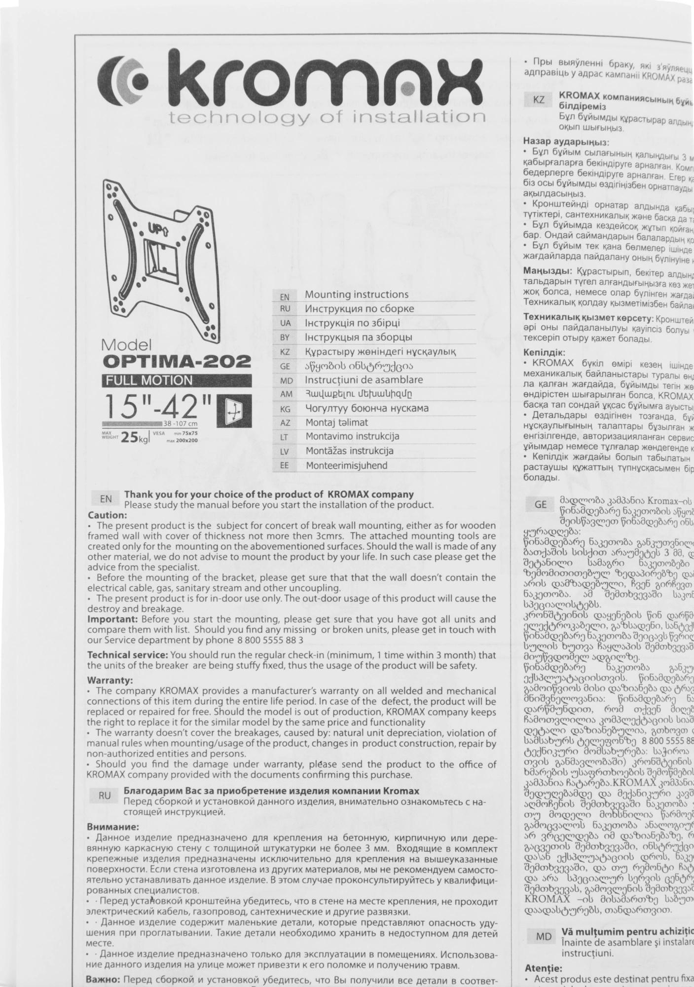 Кронштейн для телевизора Kromax OPTIMA-202 черный 15"-42" макс.25кг настенный наклон