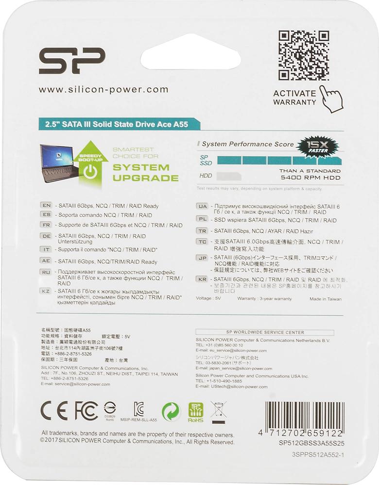 Накопитель SSD Silicon Power SATA-III 512GB SP512GBSS3A55S25 Ace A55 2.5"