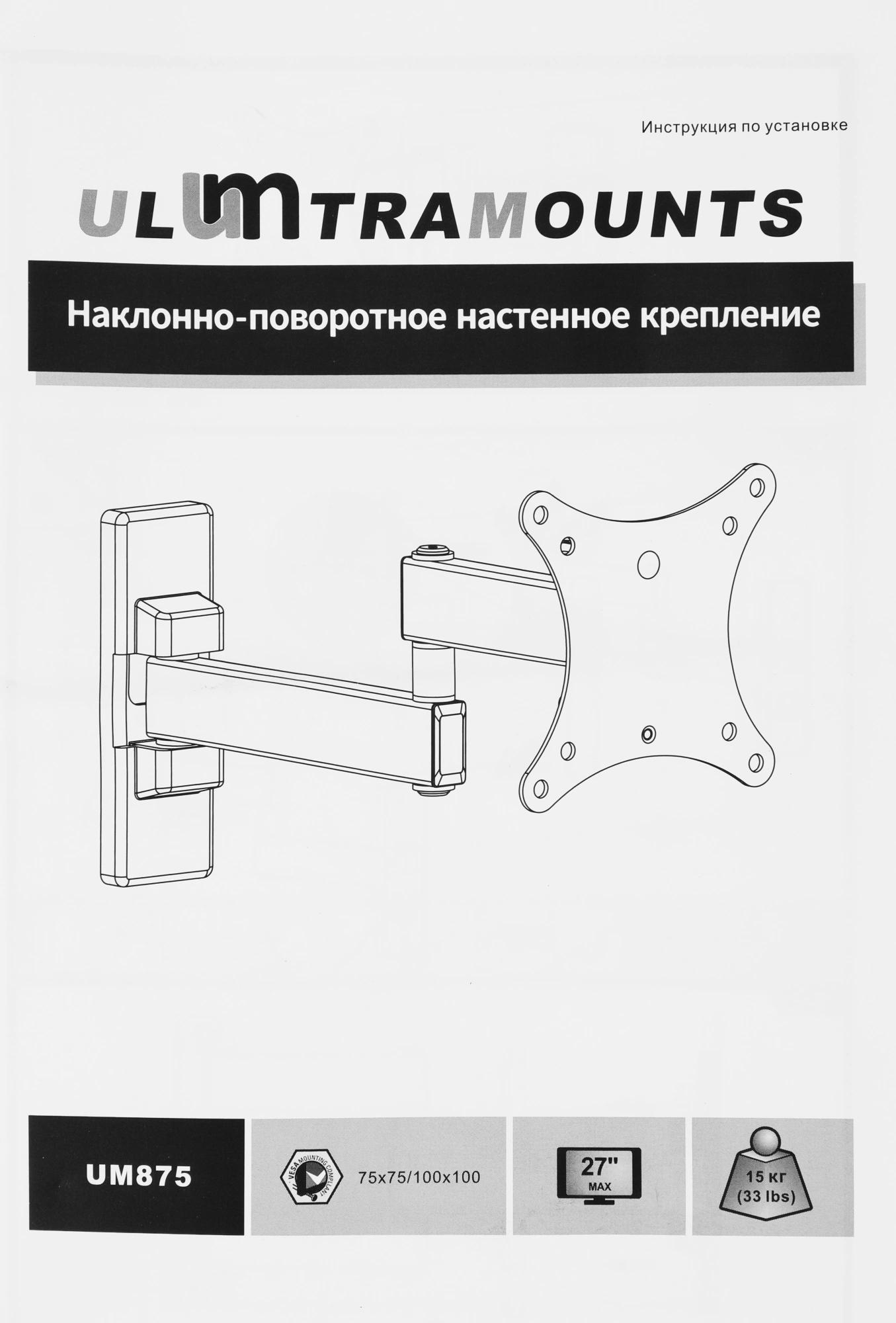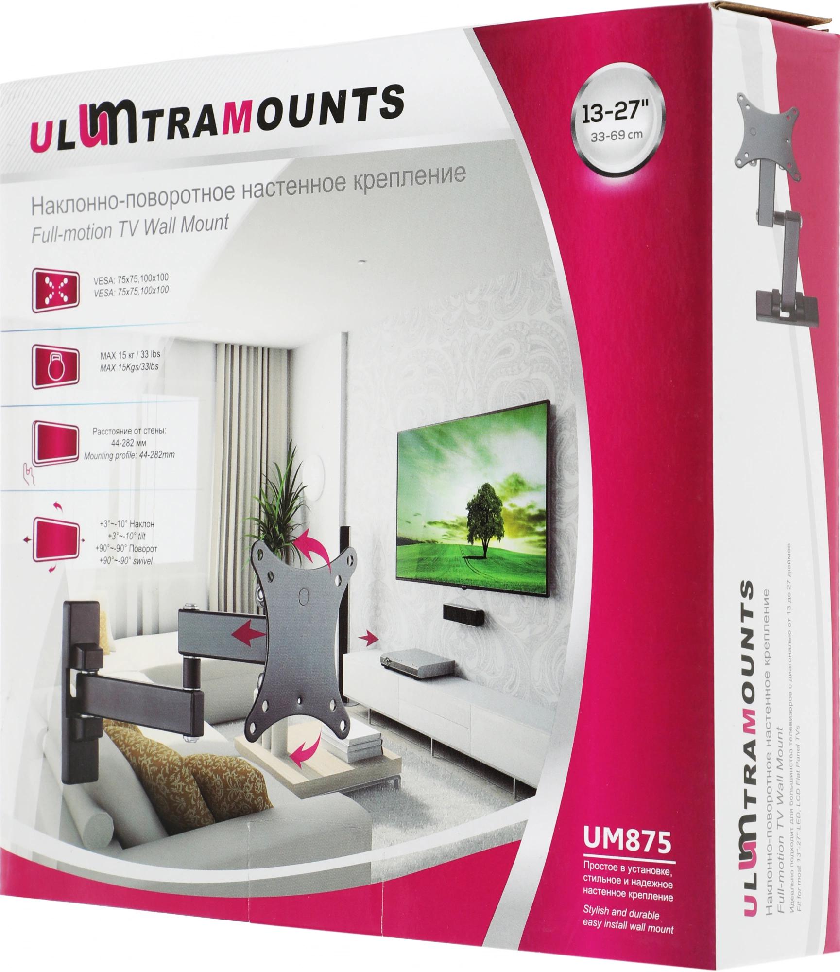 Кронштейн для телевизора Ultramounts UM875 черный 13"-27" макс.20кг настенный поворот и наклон