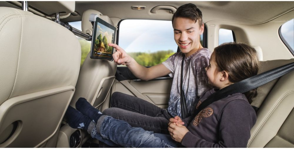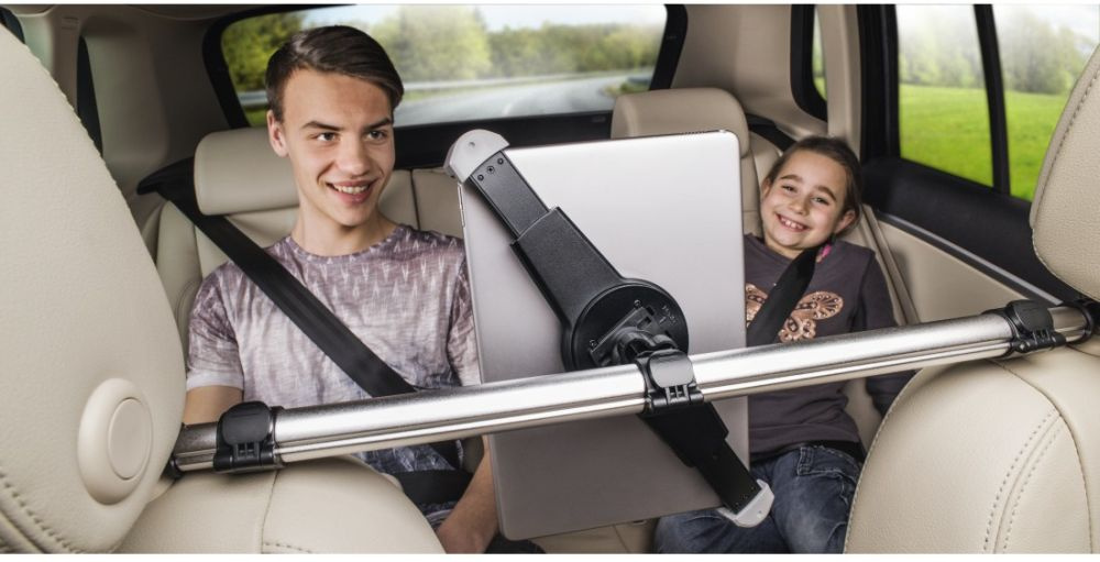 Благодаря шаровому шарниру устройство поворачивается на 360 градусов и имеет регулируемый угол наклона. Крепится между двумя передними сиденьями. Для планшетов от 7 до 10, 5"