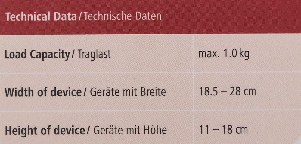 Размер удерживаемого устройства, max