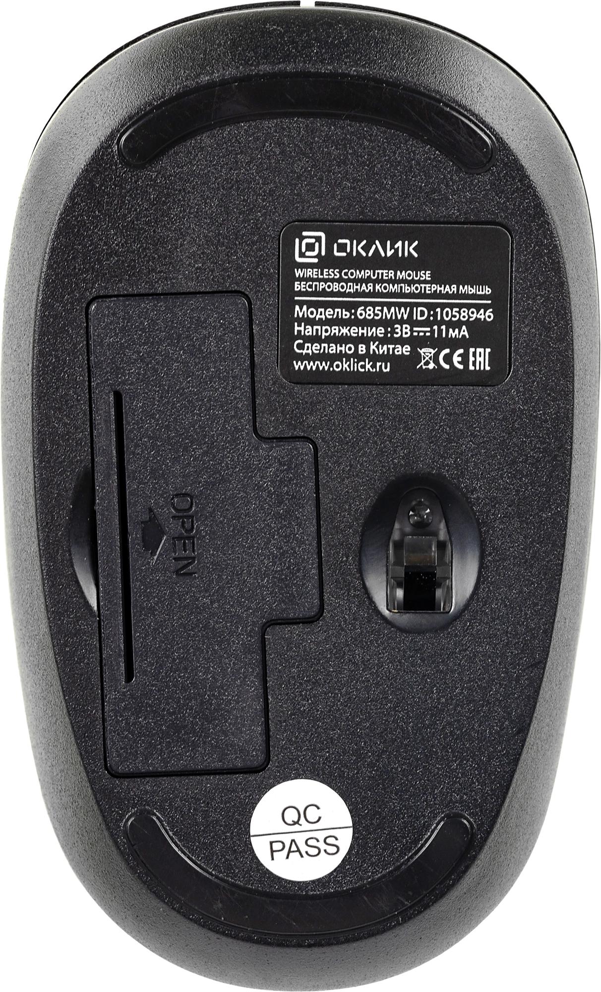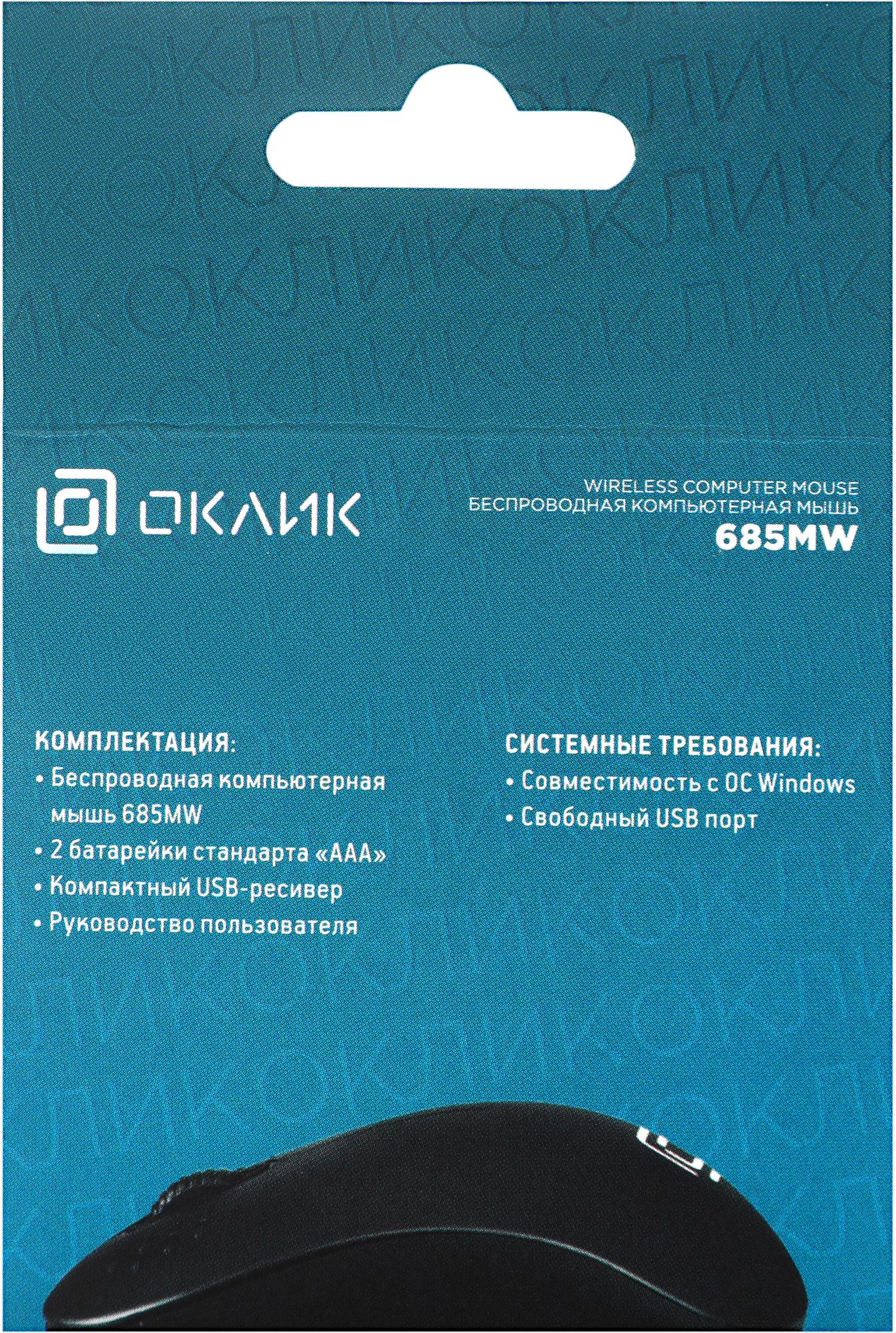 Беспроводная компьютерная мышь 685MW, 2 батарейки ААА, Компактный USB-ресивер, убирающийся в корпус мыши.