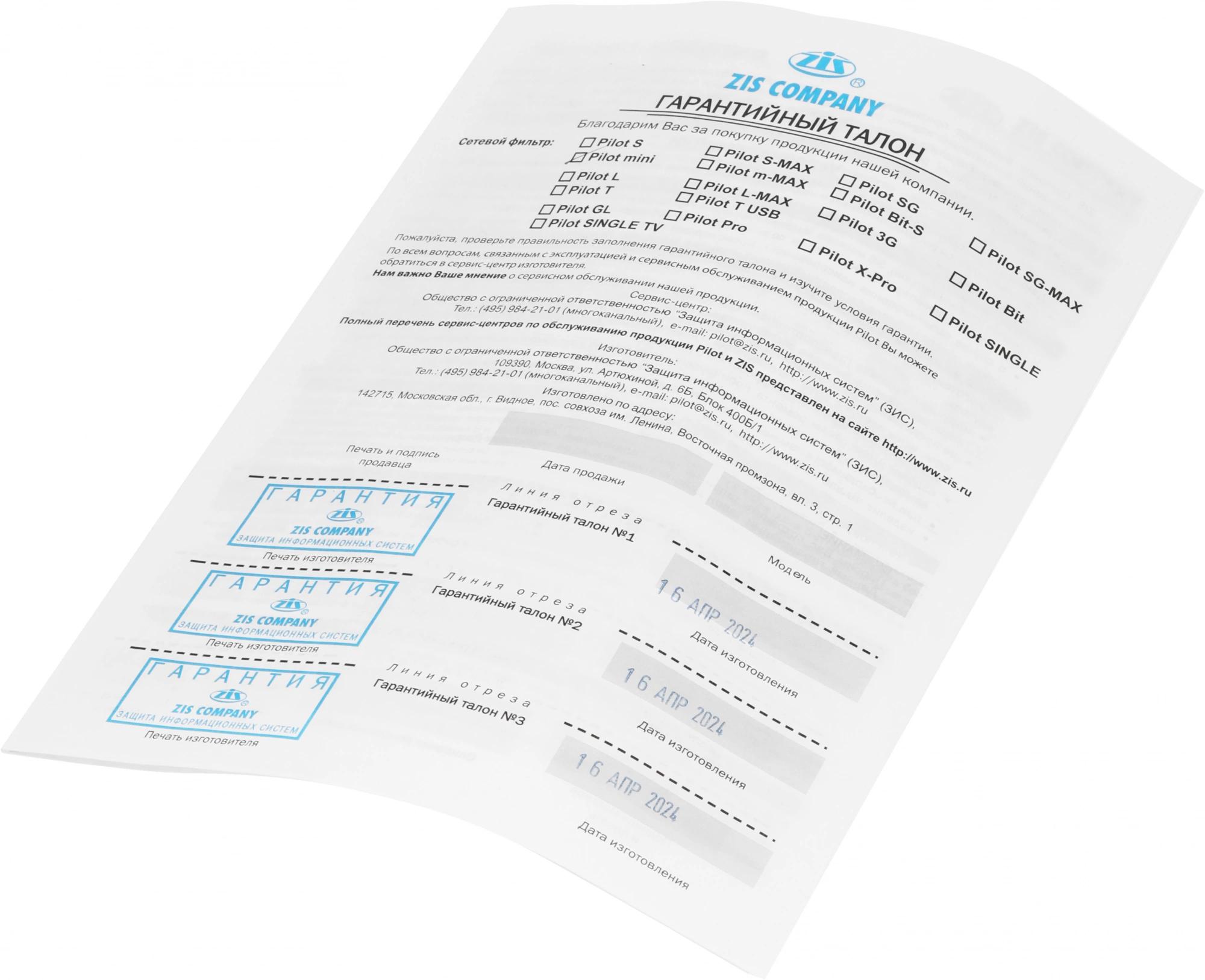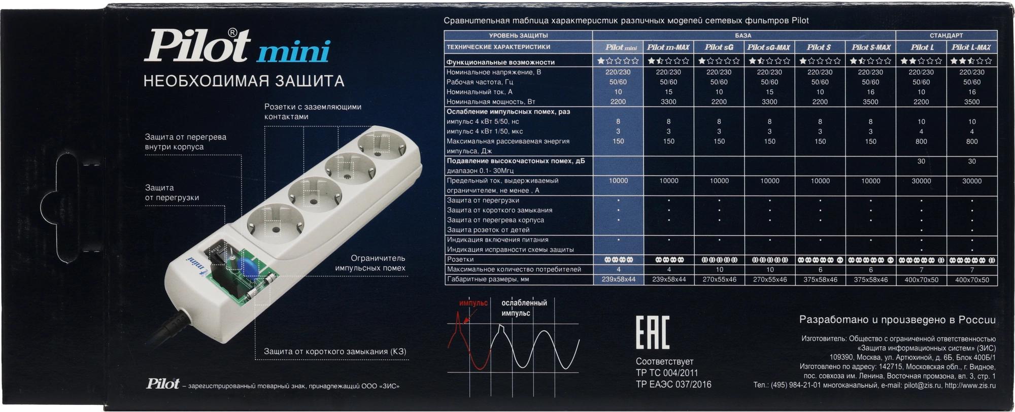Сетевой фильтр Pilot mini 7м (4 розетки) белый (коробка)