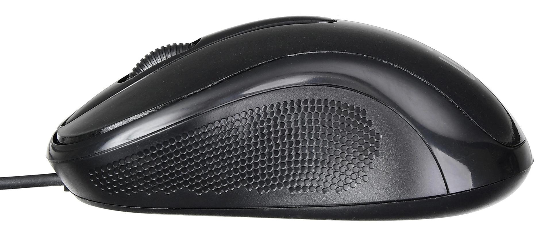 Симметричная проводная компьютерная мышь. Перфорированная боковая поверхность. Легкий вес. Специальное ПО расширяющее функциональные возможности мышки.