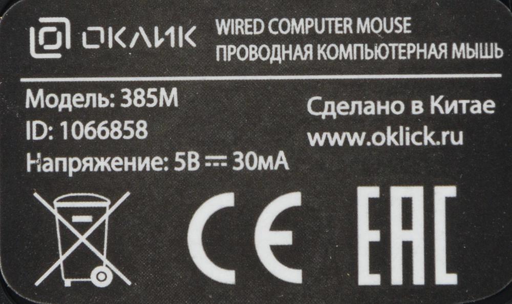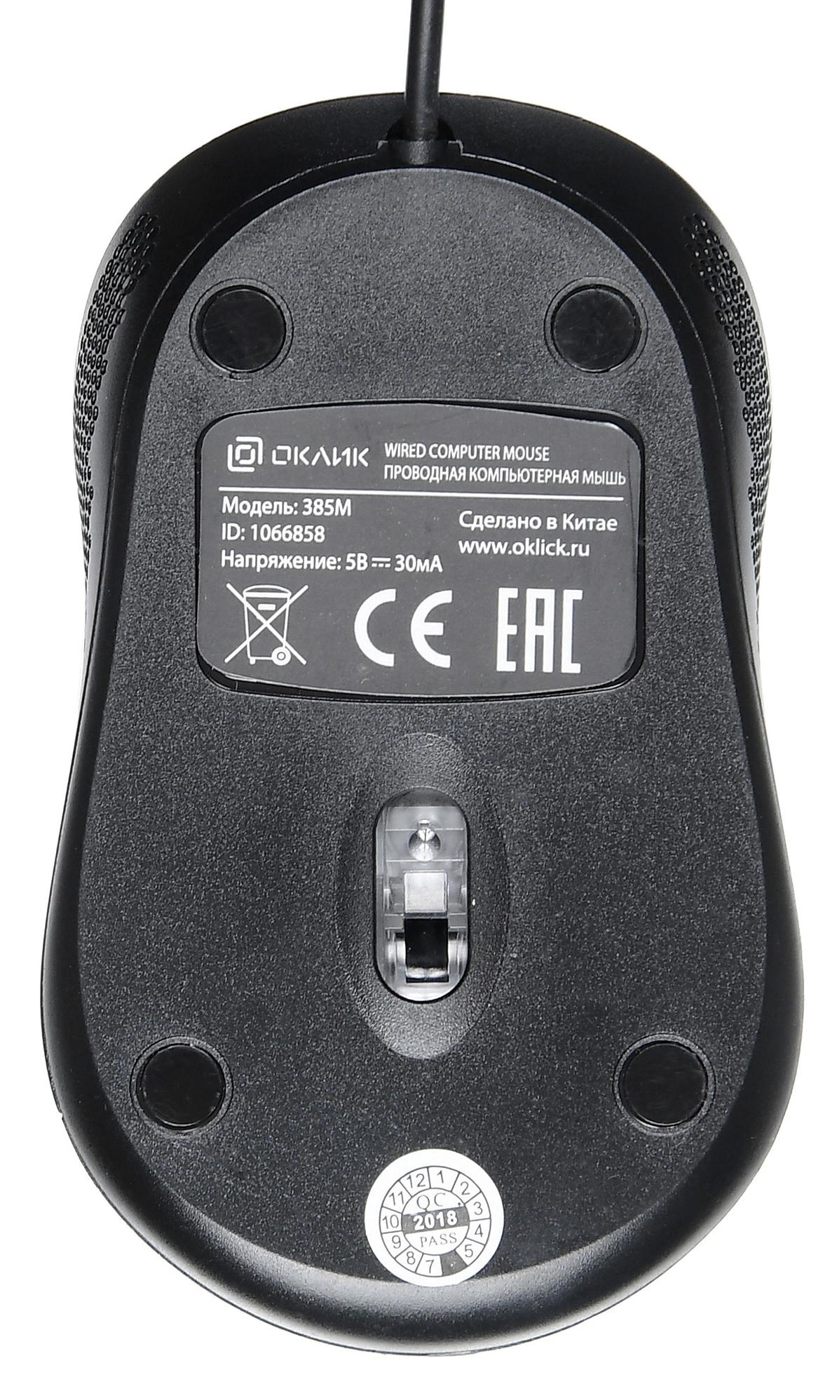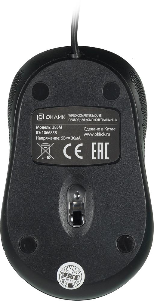 Мышь Оклик 385M черный оптическая 1600dpi USB для ноутбука 3but (1066858)