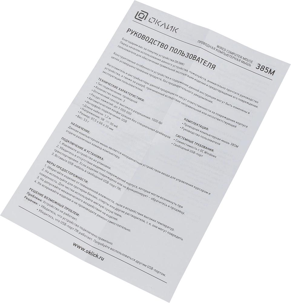 Мышь Оклик 385M черный оптическая 1600dpi USB для ноутбука 3but (1066858)