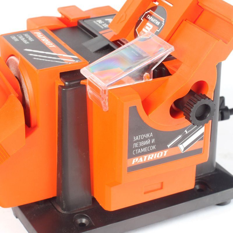 Многофункциональный станок Patriot BG 100 с различными насадками предназначен для заточки сверл по металлу, зубил, ножей, ножниц или узких лезвий.