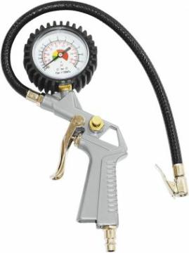 Пневмопистолет для накачки, с манометром. Незаменим в автомастерских, гаражах, на заправках. Оснащен манометром, необходимым для контроля давления, и гибким шлангом для присоединения к штуцеру шины.