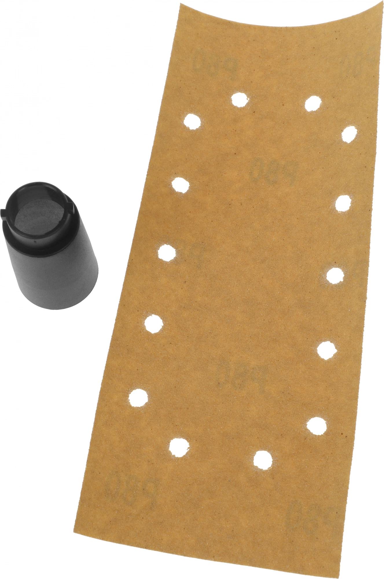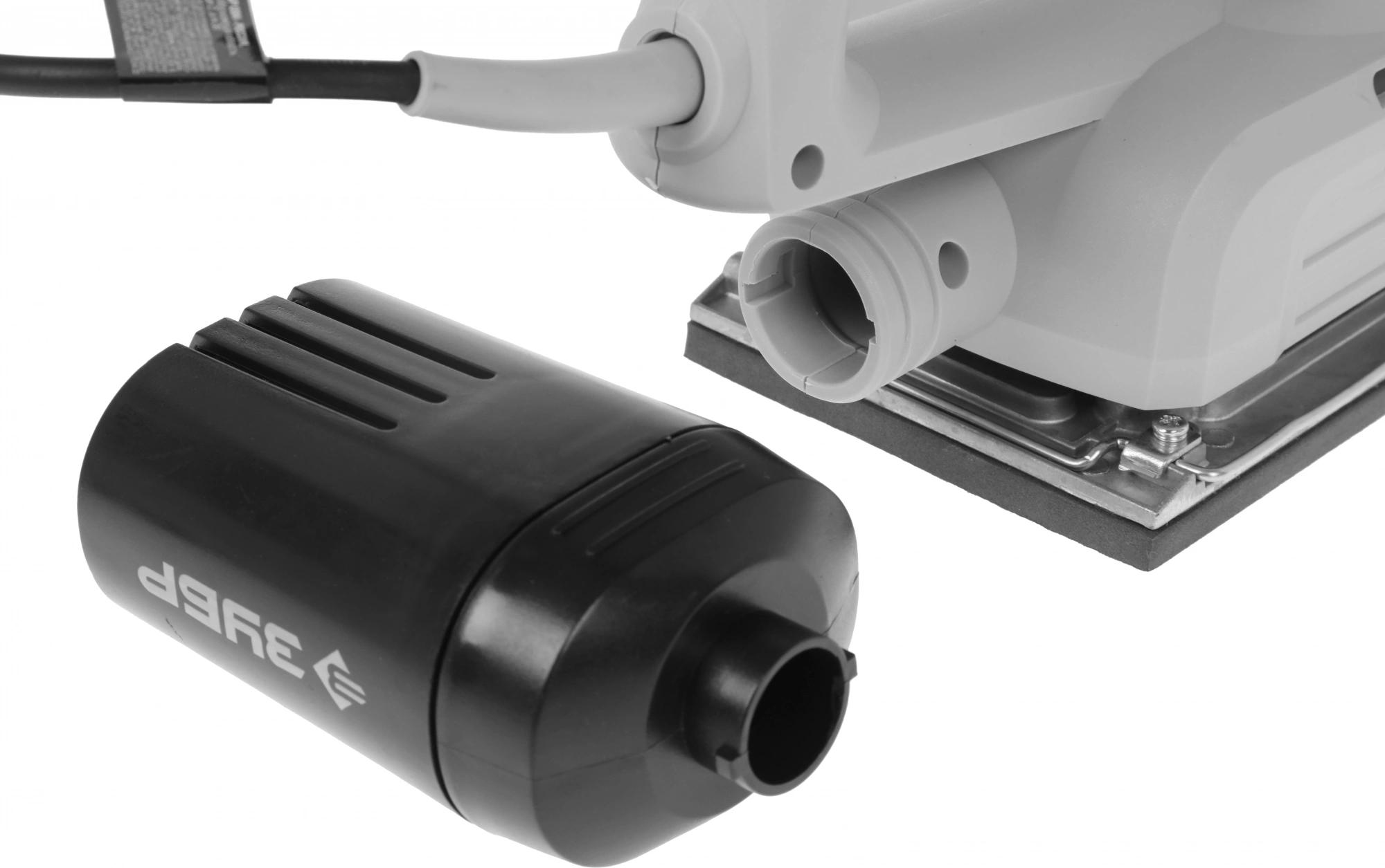 Машина шлифовальная, бумага шлифовальная, контейнер для сбора пыли, переходник для пылесоса, руководство по эксплуатации.