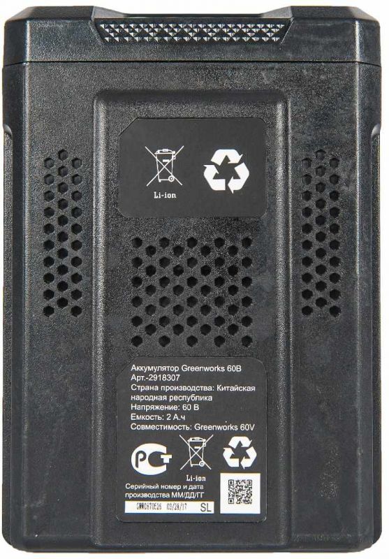 Батарея аккумуляторная Greenworks G60B2 60В 2Ач Li-Ion (2918307)