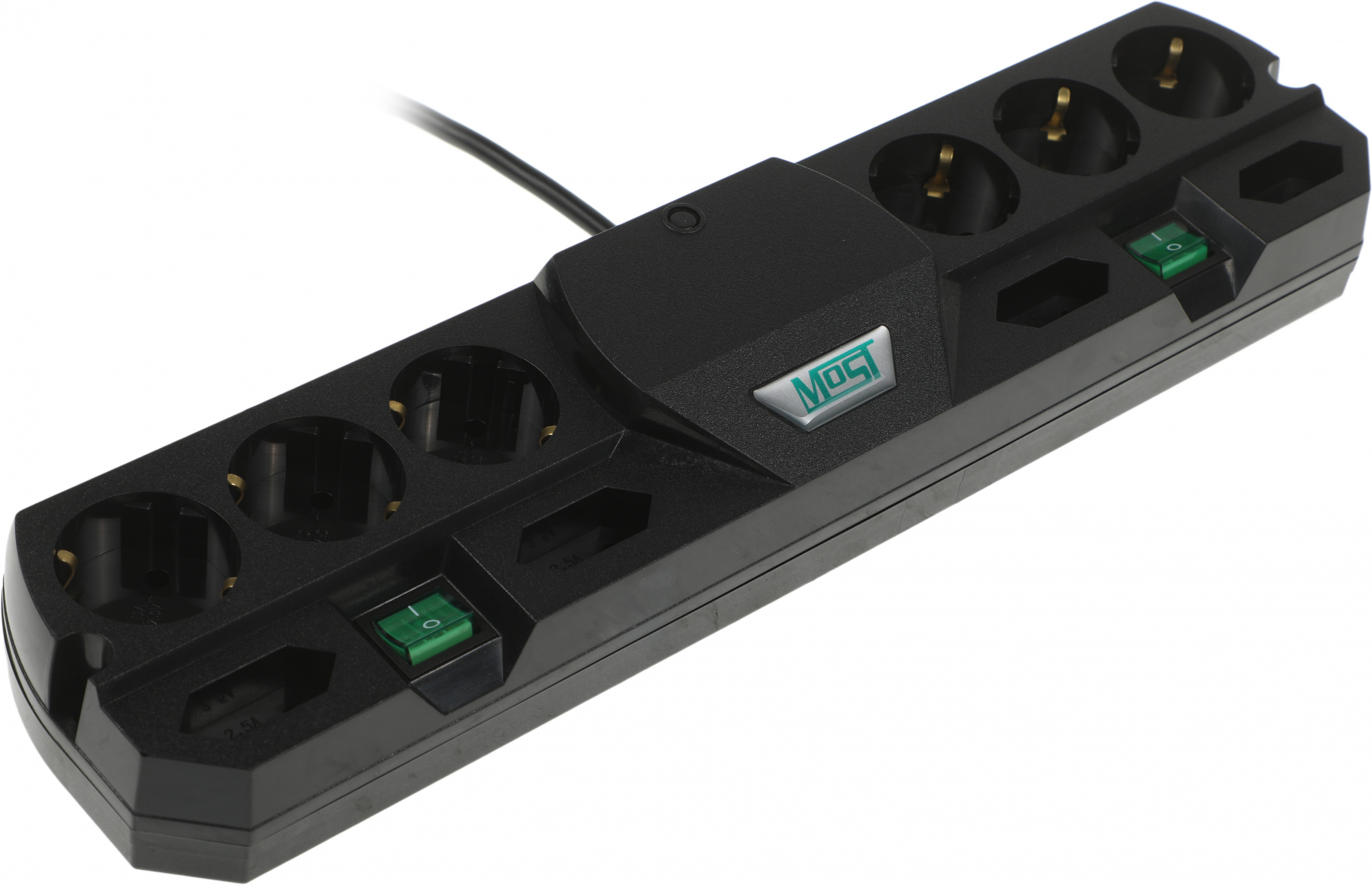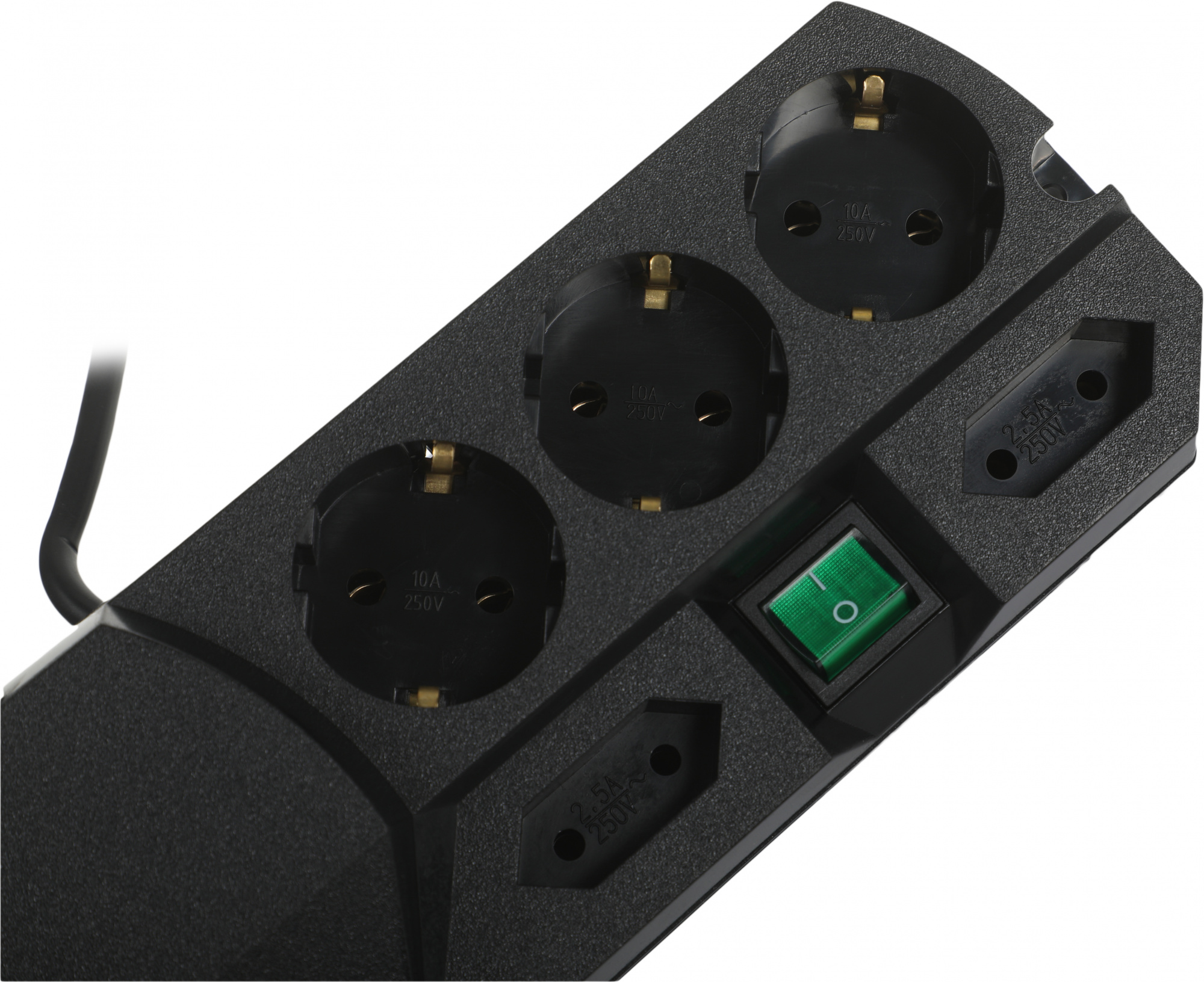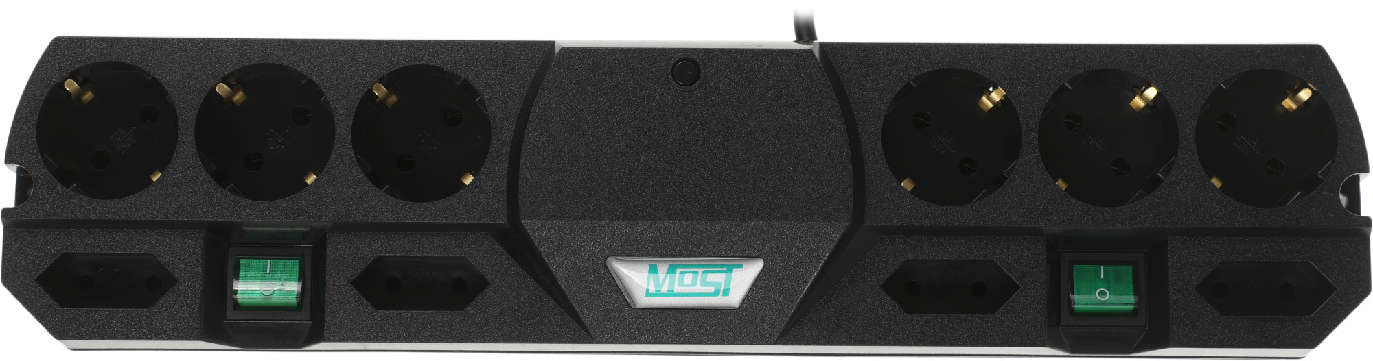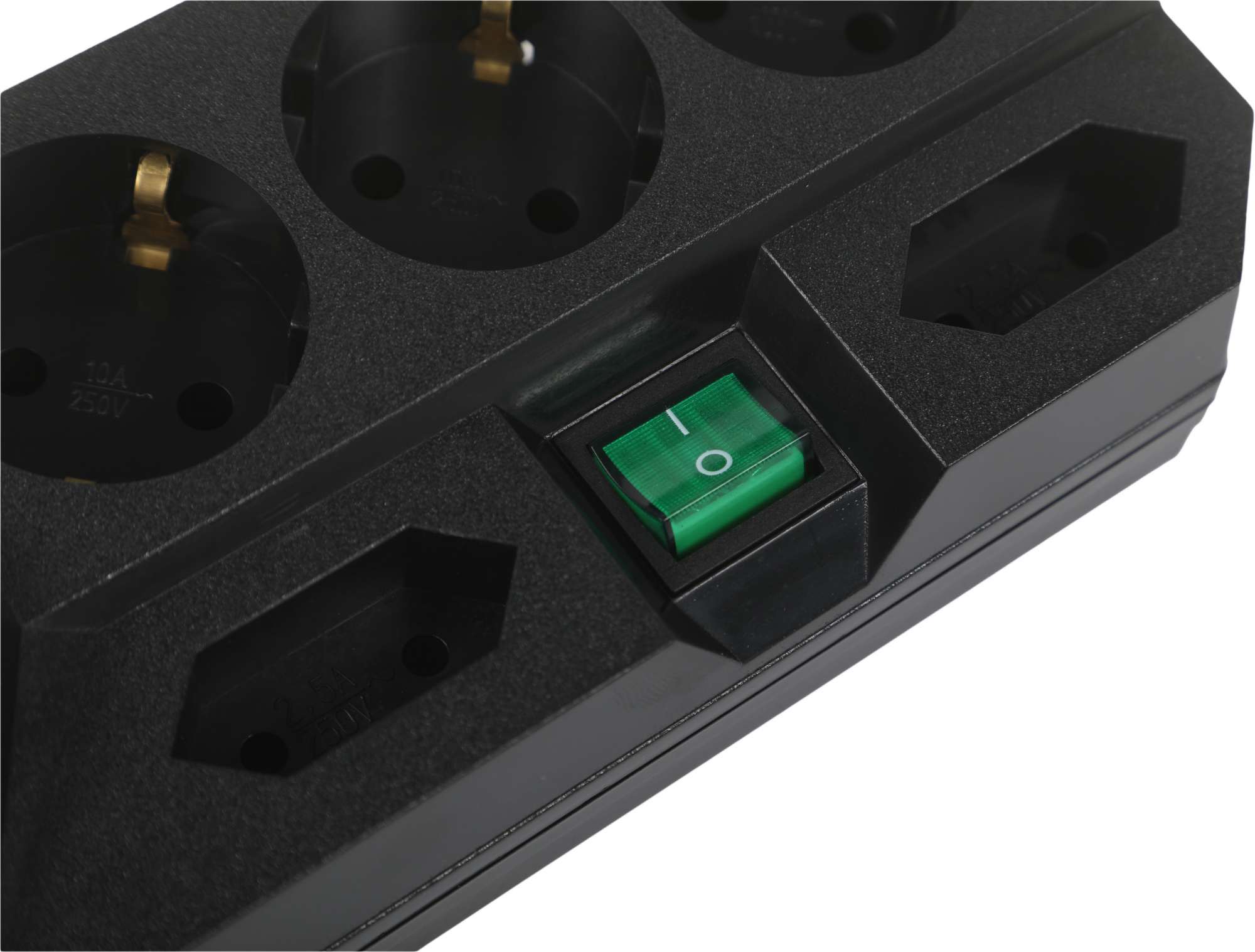 2 сетевых фильтра в одном корпусе. Возможность подключить до 10 различных устройст одновременно. Возможность раздельного питания 2-х групп аппаратуры/двух рабочих мест рядом. 6 евророзеток с заземлением и 4 узкие розетки без заземления. Рекомендуется для сетей с относительно стабильным напряжением.