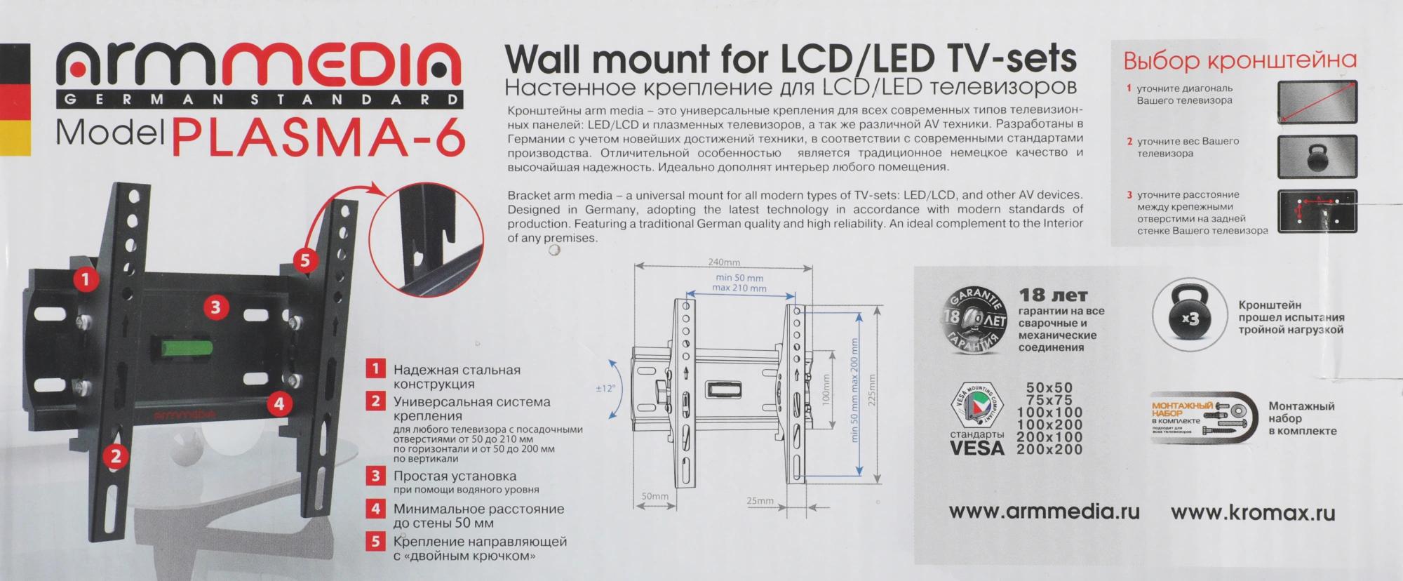 Кронштейн для телевизора Arm Media PLASMA-6 new черный 15"-47" макс.35кг настенный наклон