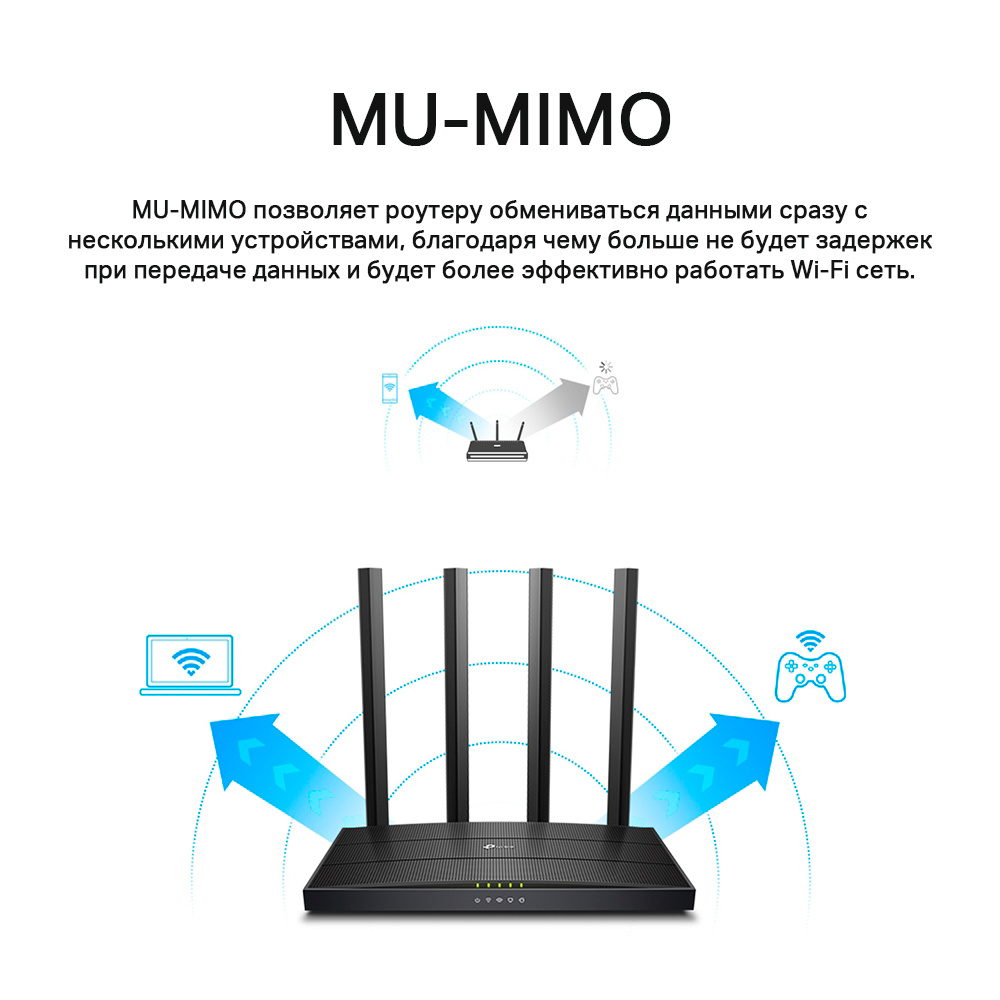 Archer C6 позволит создать надёжную и быструю Wi-Fi сеть стандарта 802.11ac. Используйте диапазон 2, 4 ГГц со скоростью до 300 Мбит/с для выполнения повседневных задач, таких как работа с почтой и просмотр веб-страниц, а диапазон 5 ГГц со скоростью до 867 Мбит/с для просмотра HD-стримов и онлайн-игр.