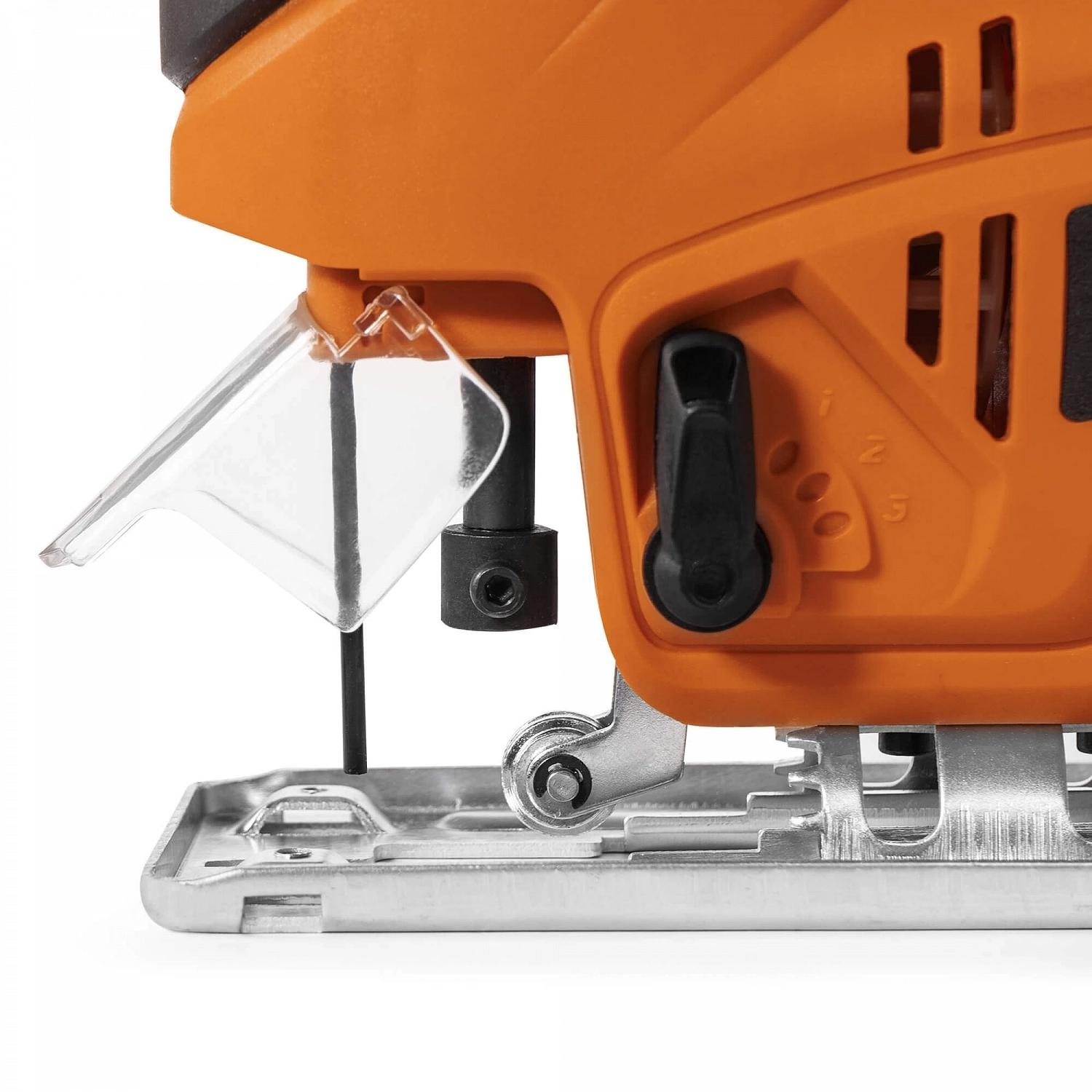 Фиксатор кнопки включения; Штуцер для подключения пылесоса; Регулировка маятникового хода; Надежная стальная поворотная подошва (90-45 градусов).