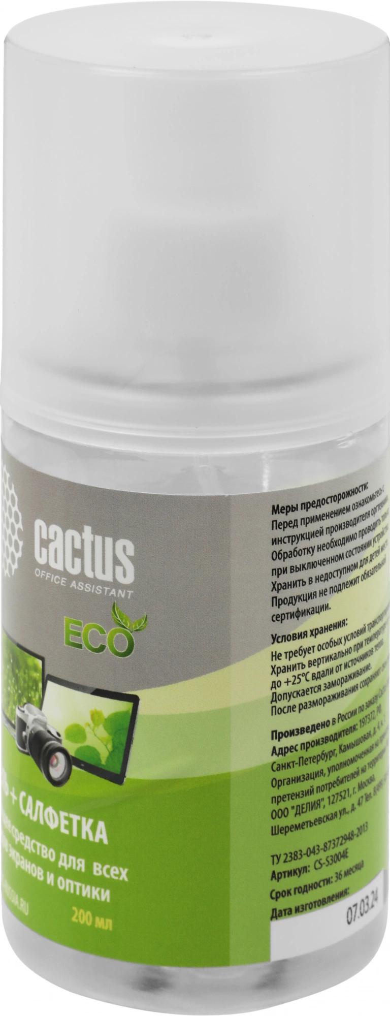 Чистящий набор (салфетка + гель) Cactus CS-S3004E для экранов и оптики 1шт 18x18см 200мл