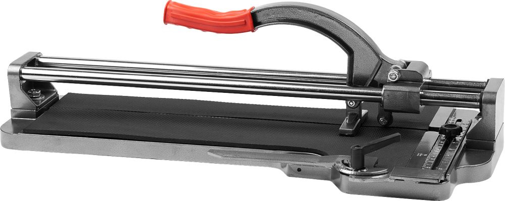 Для работы с керамогранитом и керамической плиткой повышенной толщины плиткорез оснащен ручкой, направляющими и литой платформой.