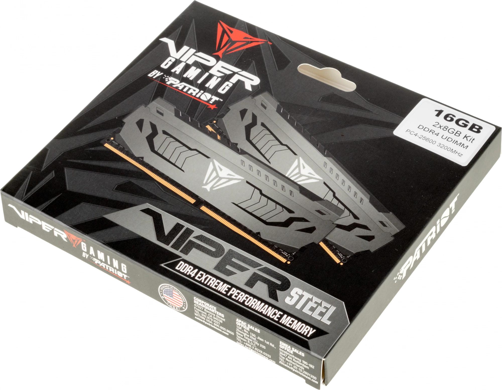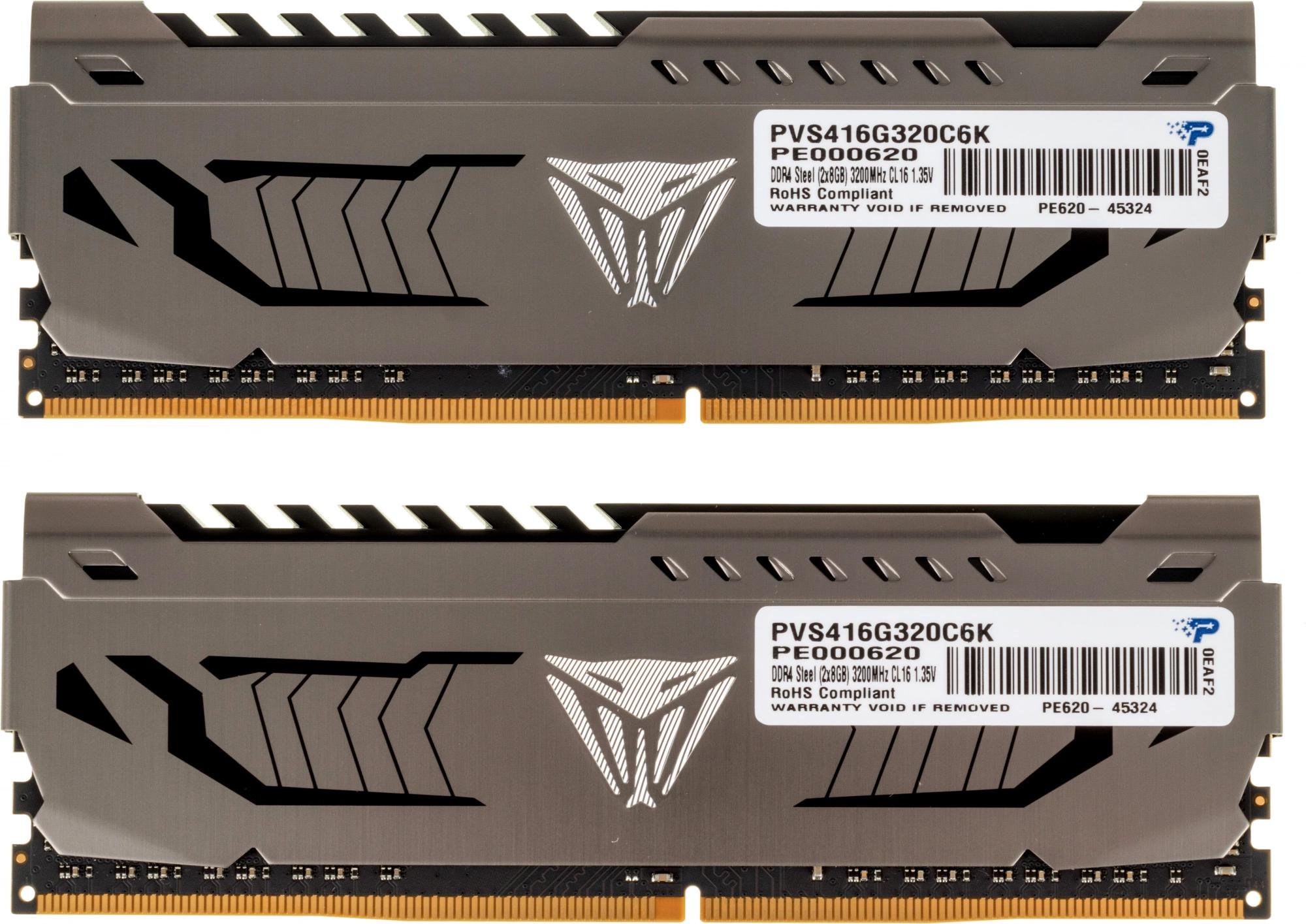 Память DDR4 2x8Gb 3200MHz Patriot PVS416G320C6K Viper Steel RTL Gaming PC4-25600 CL16 DIMM 288-pin 1.35В single rank с радиатором Ret
