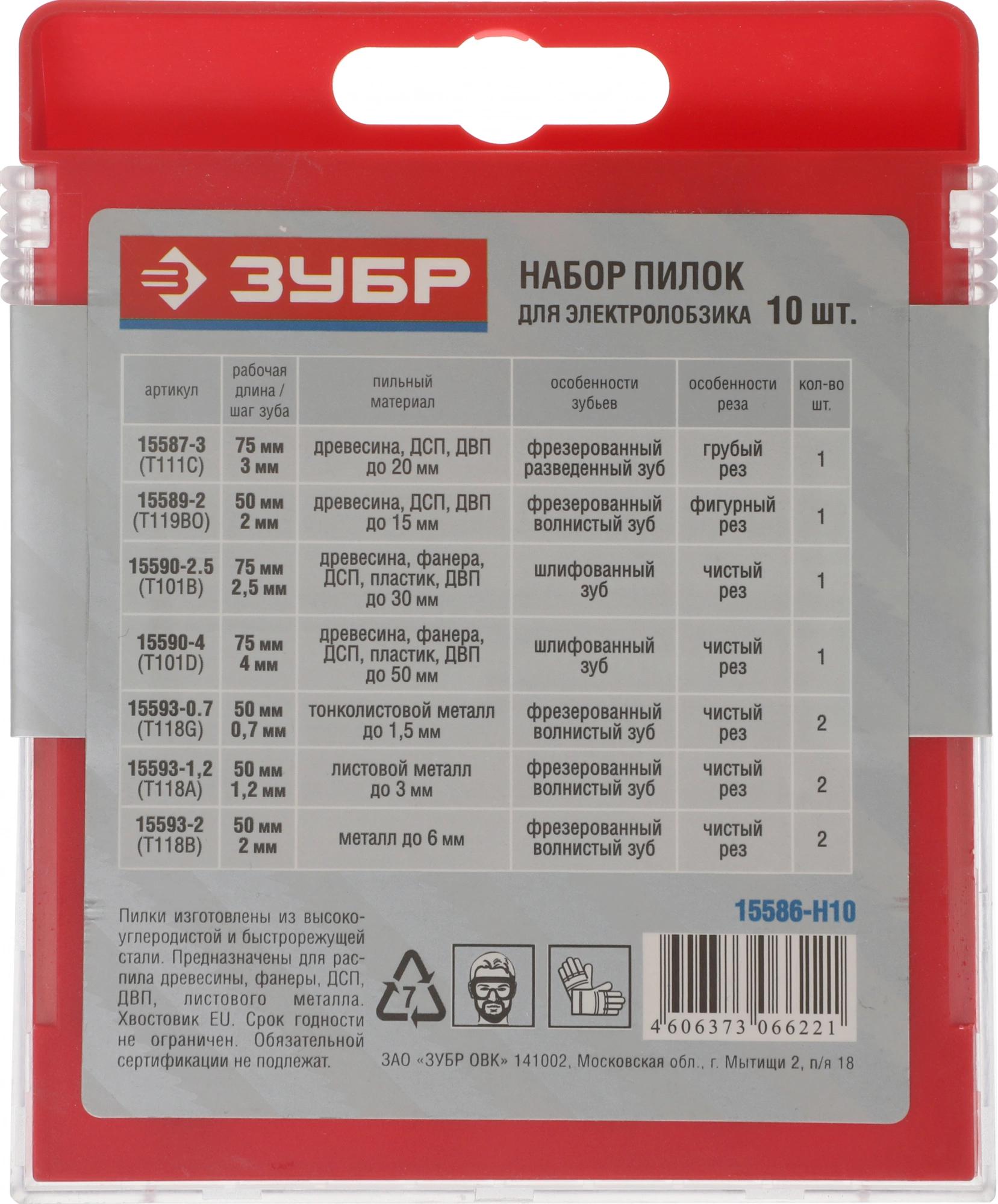 Набор пилок универсальные Зубр 15586-H10 10пред. (лобзики)