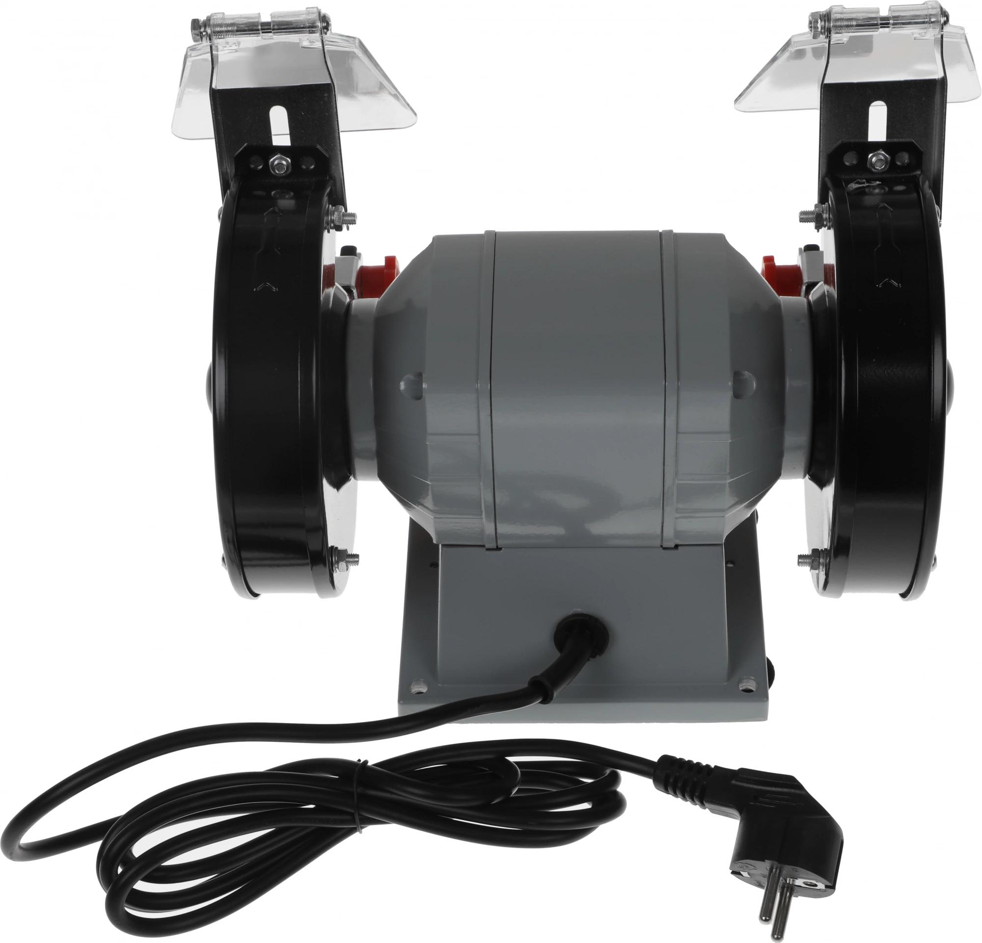 Алюминиевый корпус, надежный асинхронный двигатель, прозрачные экраны на точильных кругах. Точильный круг 2 шт., защитный экран с креплением 2 шт., рабочая площадка с креплением 2 шт., адаптер 32 мм 2 шт.