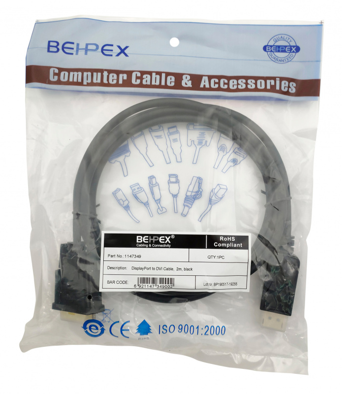 Кабель DisplayPort (m) DVI (m) 2м черный
