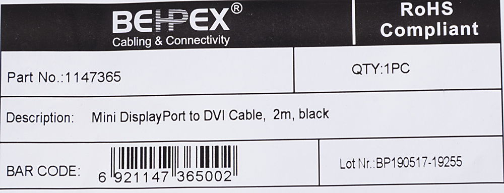 Кабель 1.1v miniDisplayPort (m) DVI (m) 2м черный