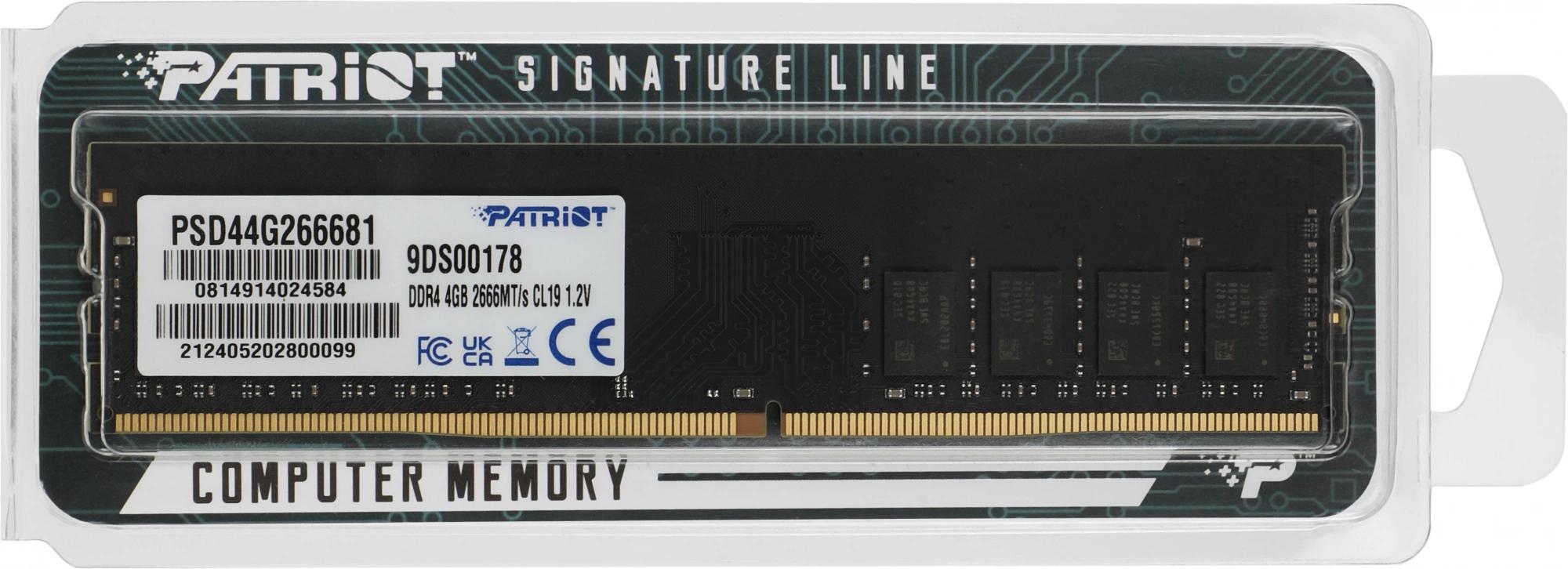 Память DDR4 4Gb 2666MHz Patriot PSD44G266681 Signature RTL PC4-21300 CL19 DIMM 288-pin 1.2В single rank Ret