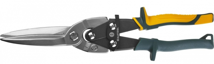 Профессиональные ножницы по металлу KRAFTOOL изготовлены из хромомолибденовой стали, обладают высокой твердостью режущих кромок и оснащены мощным рычажным механизмом. Лезвия ножниц закалены токами высокой частоты до твердости 62–65 HRC. Максимальная толщина разрезаемой холоднокатаной стали 1 мм.