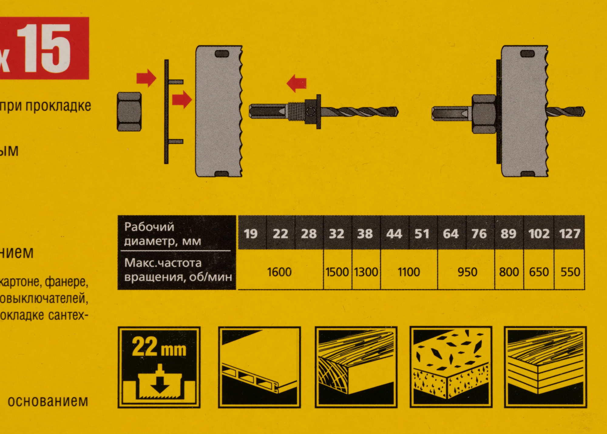 Набор коронок Stayer 29600-H15 по дереву (15пред.) для дрелей/перфораторов