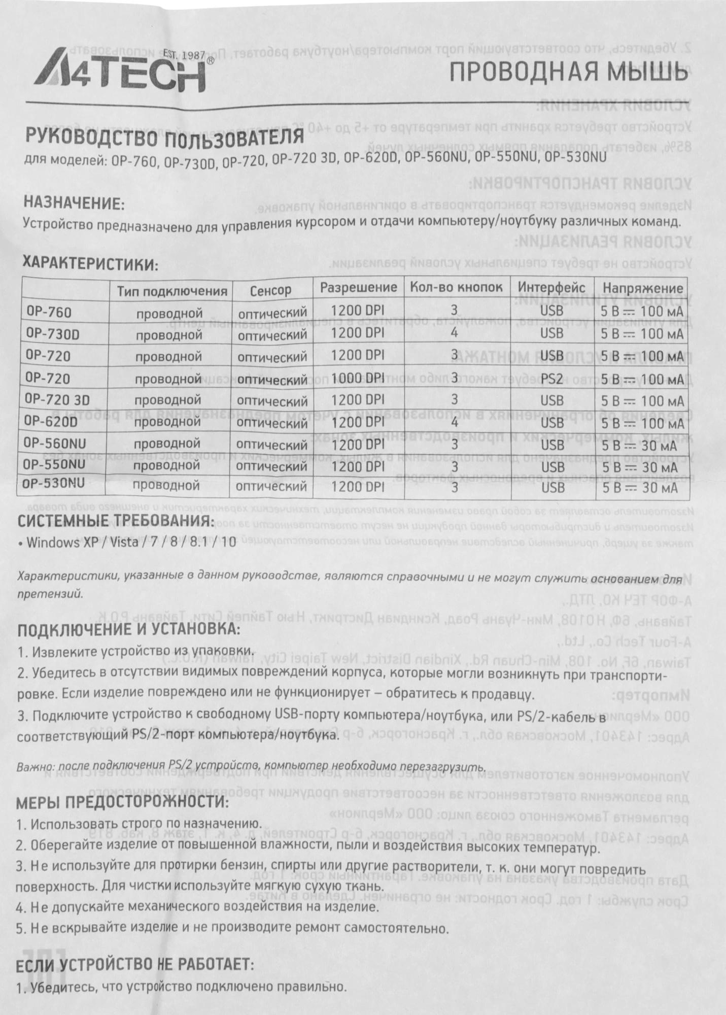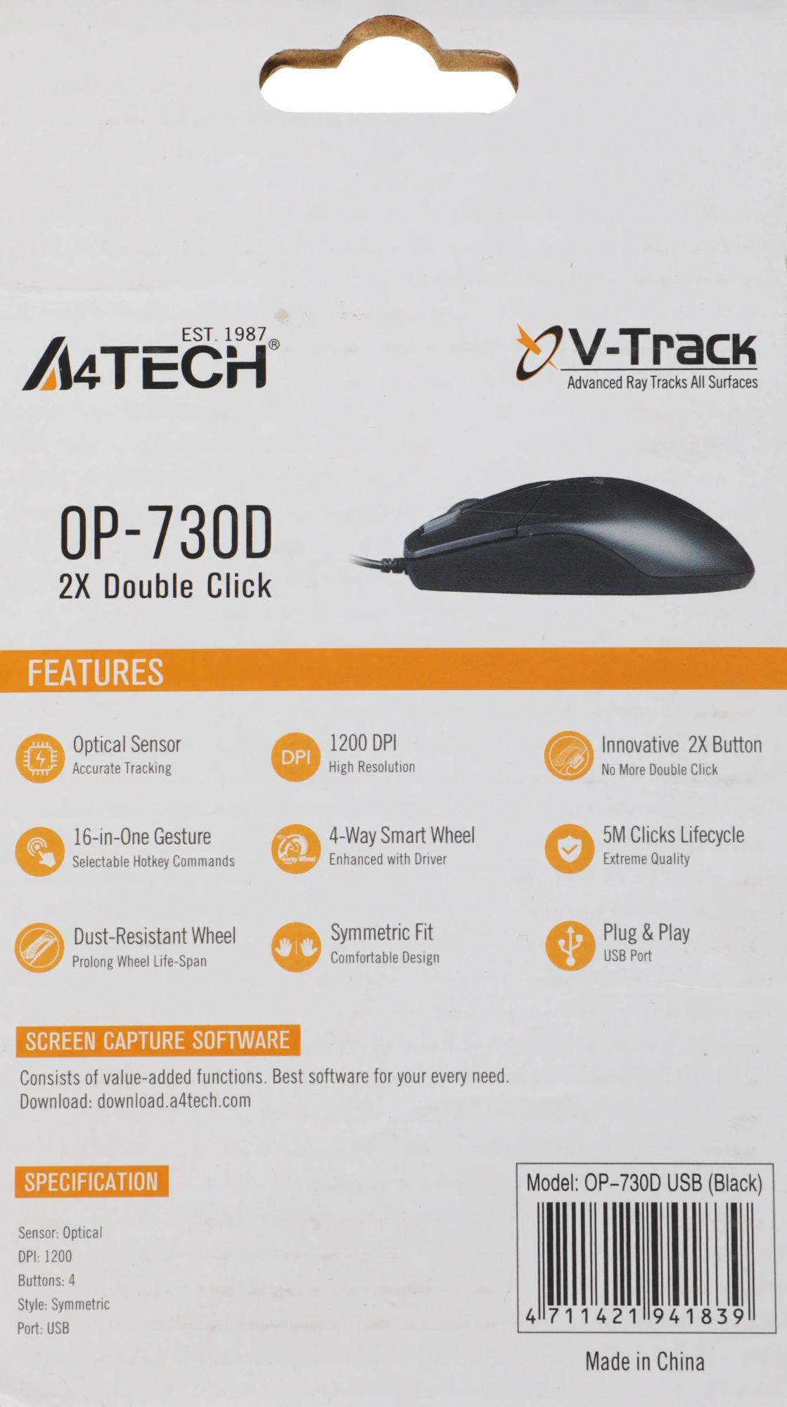 Мышь A4Tech OP-730D черный оптическая 1200dpi USB 4but