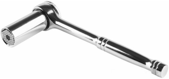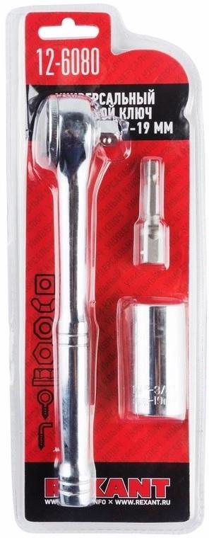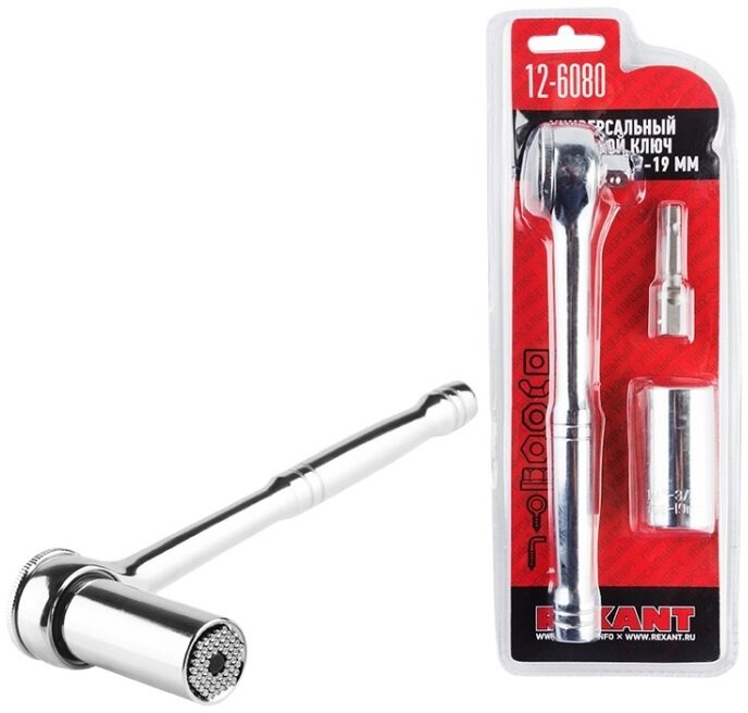 Универсальный торцевой ключ с трещоткой 7-19 мм Rexant это уникальный инструмент заменяющий множество других. Он имеет универсальное гнездо которое моментально принимает форму любых винтов, шурупов, гаек, крючков и головок болтов. Широкий диапазон регулировки, от 7 мм до 19 мм.