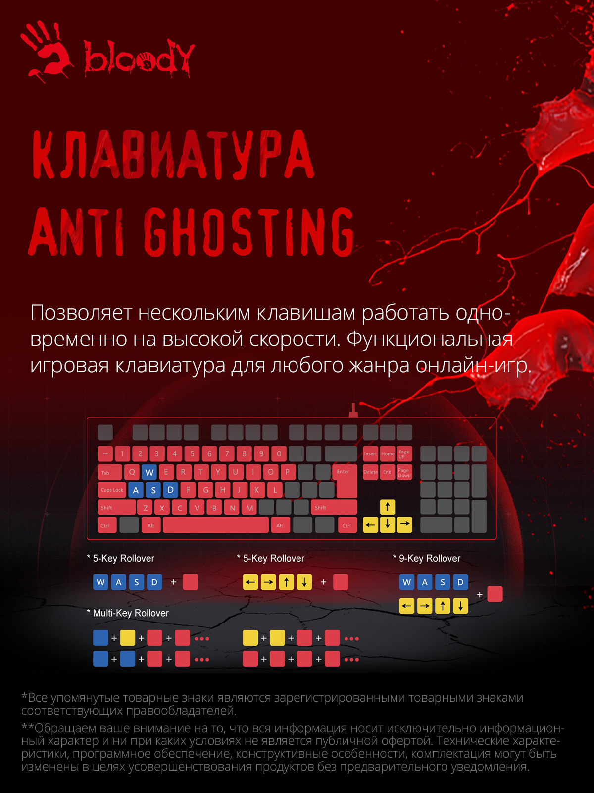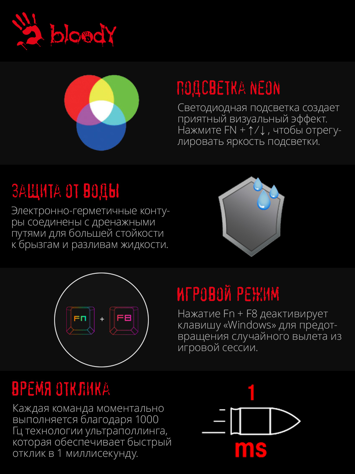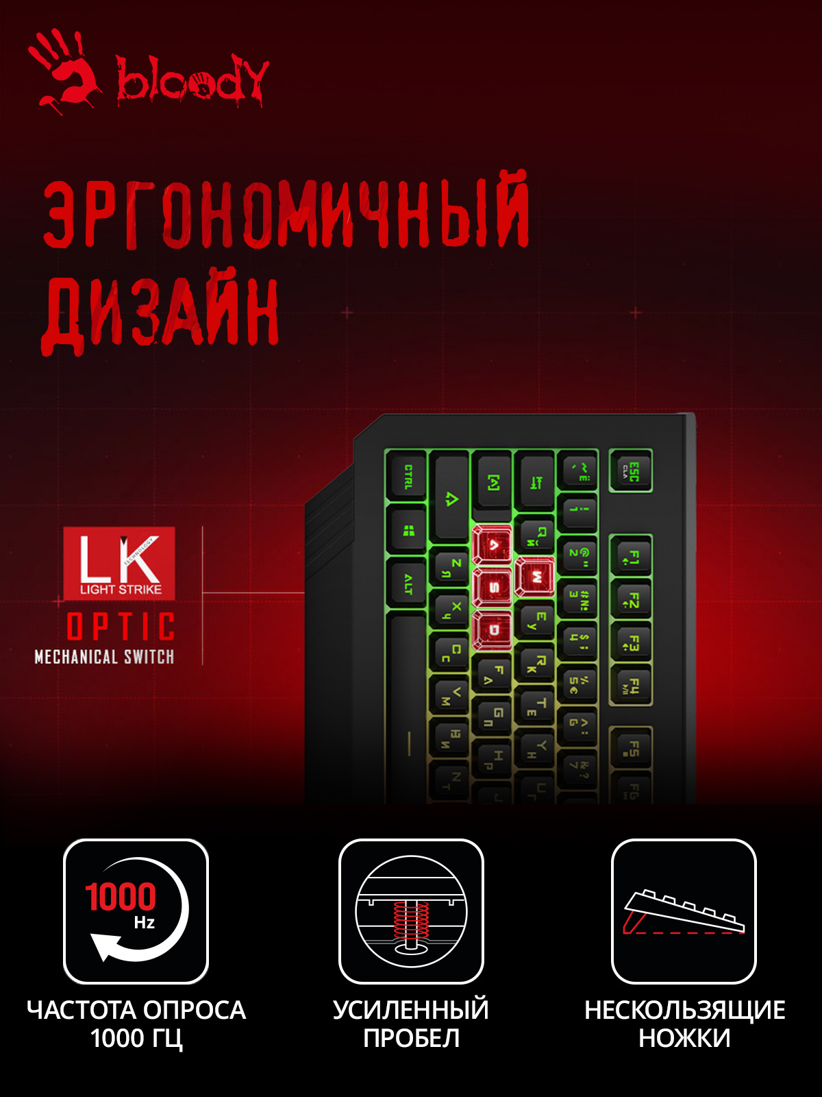 Клавиатура A4Tech Bloody B125N черный USB Multimedia for gamer LED
