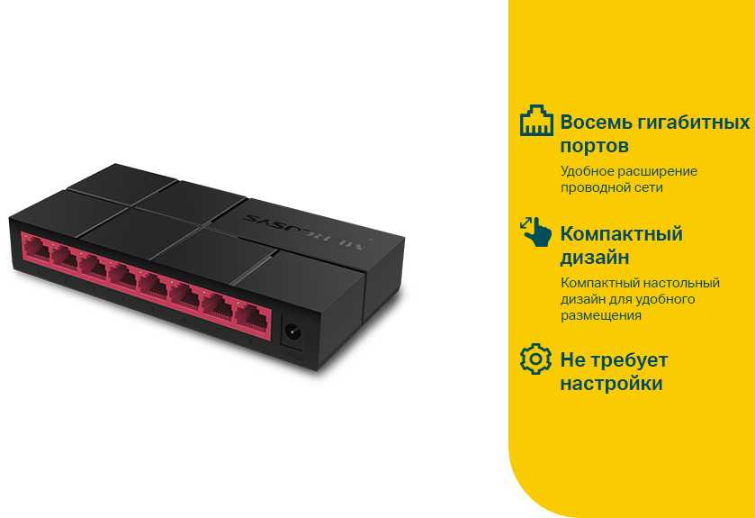 8 портов 10/100/1000 Мбит/с (RJ45) с автосогласованием и поддержкой Auto MDI/MDIXКомпактный дизайн для удобного размещенияПоддержка Plug and Play, дополнительная настройка не требуетсяЭнергосберегающая технология позволяет сэкономить до 82% потребляемой электроэнергии