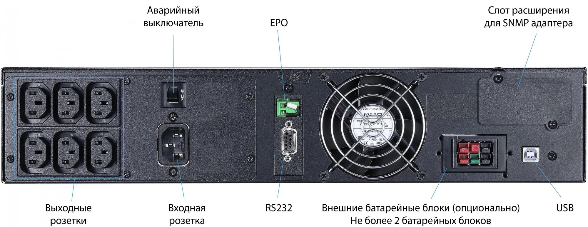 Поворотный ЖК дисплей: Входное / выходное напряжение, частота входного / выходного напряжения; Режимы работы: нормальный, байпас, питание от батарей; уровень заряда батарей; уровень нагрузки.