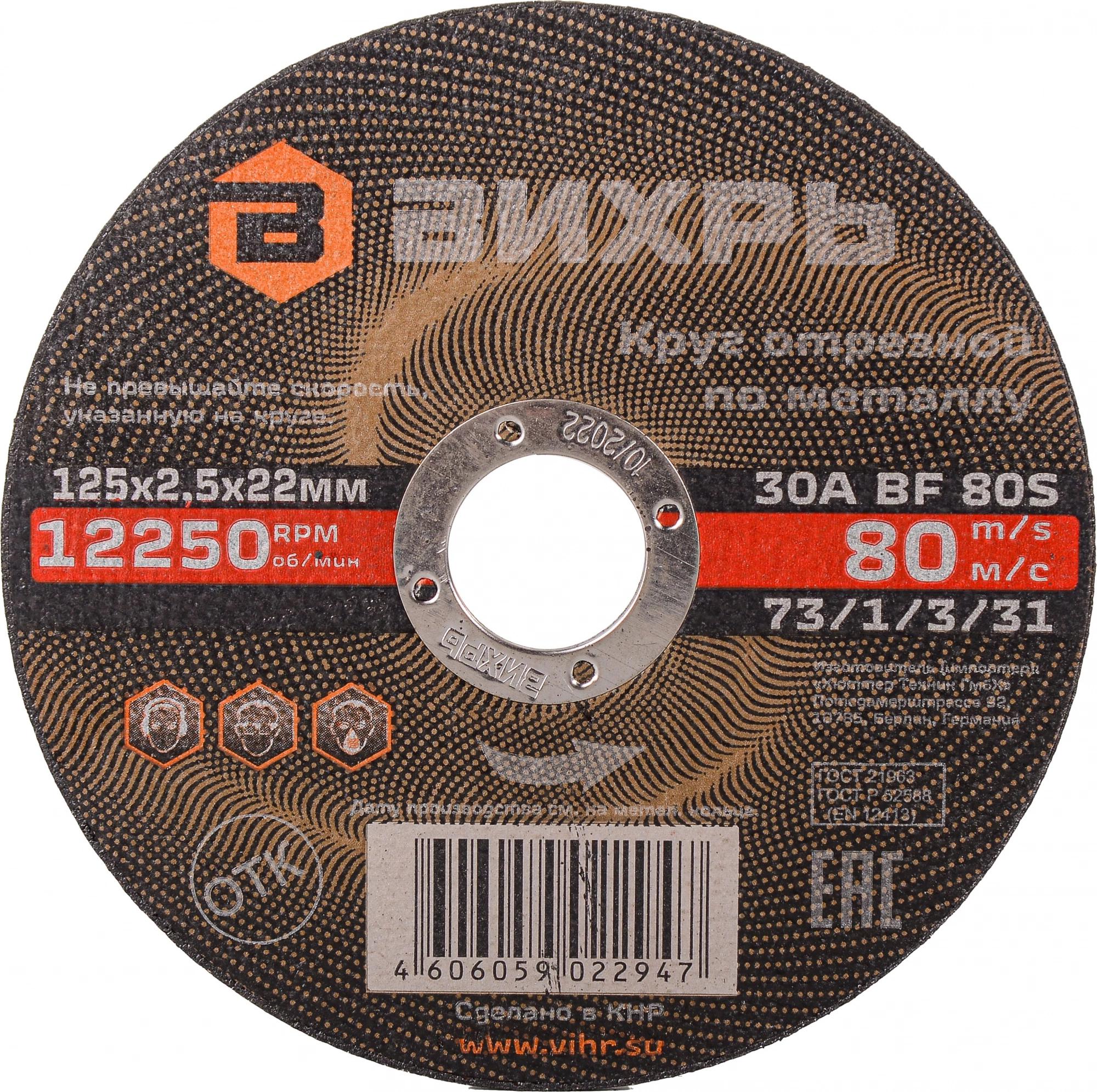 Диск отрезной по мет. Вихрь 73/1/3/31 d=125мм d(посад.)=22.2мм (угловые шлифмашины) (упак.:25шт)