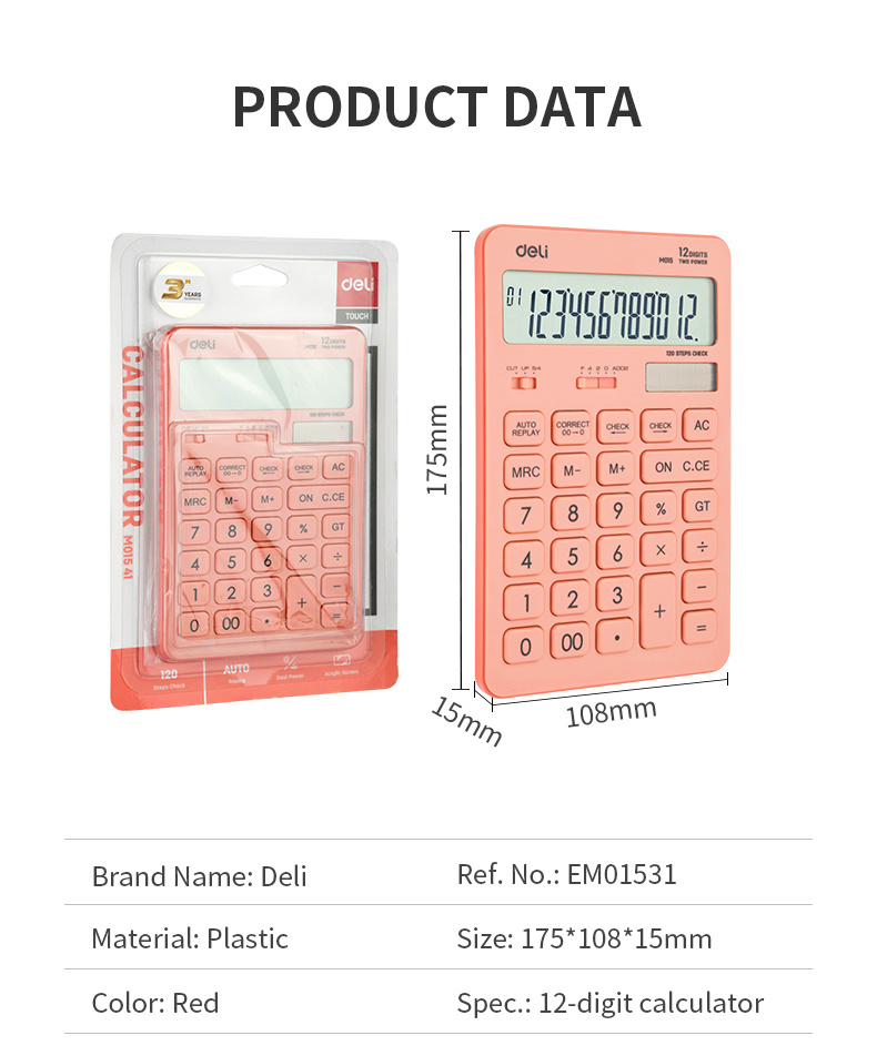 Калькулятор настольный Deli Touch EM01541 красный 12-разр.