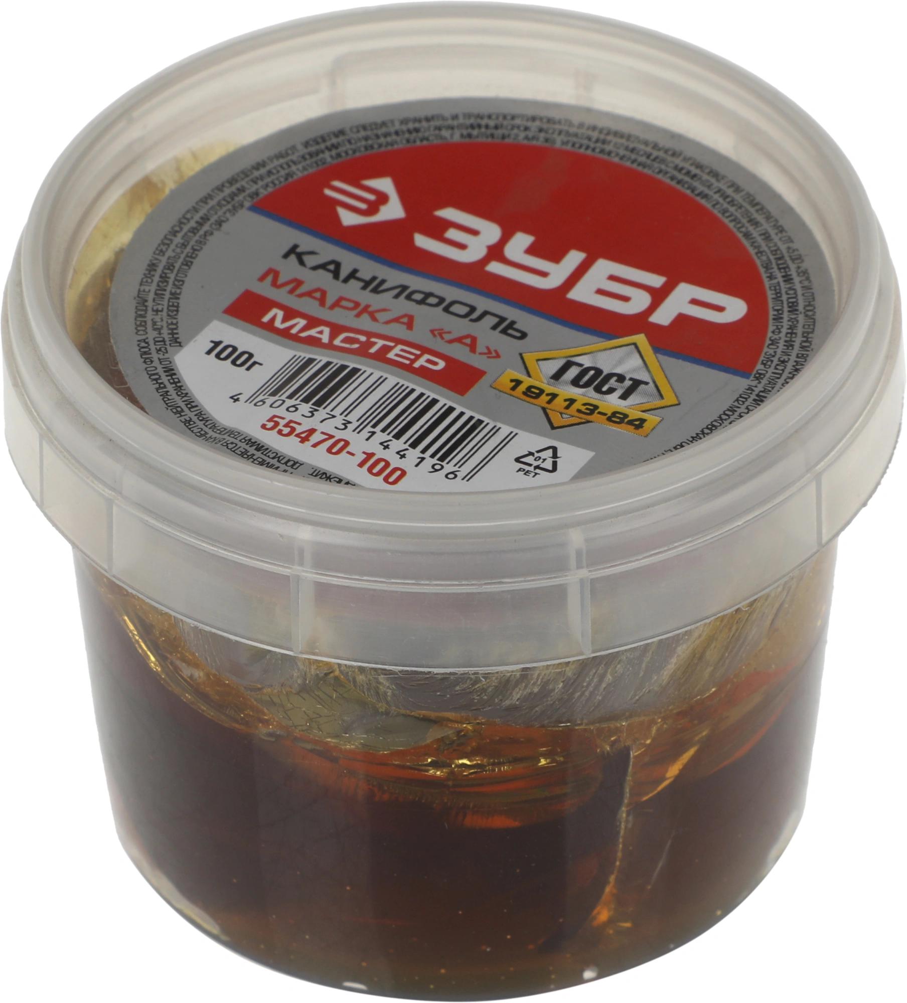 Канифоль сосновая (смола хвойных пород дерева) Зубр 55470-100 применяется для высококачественной пайки и лужения радио- и электротехнических устройств. Является хорошим диэлектриком. Изготовлена в соответствии с ГОСТ 19113-84. Объем - 100 г.