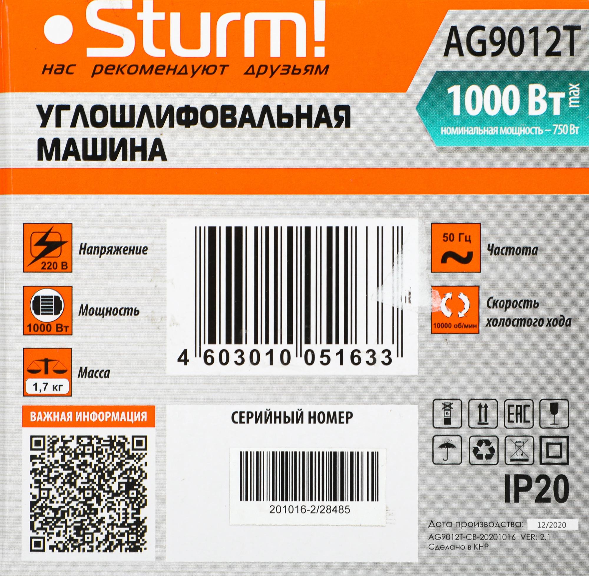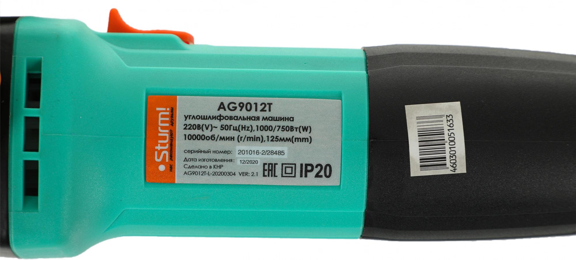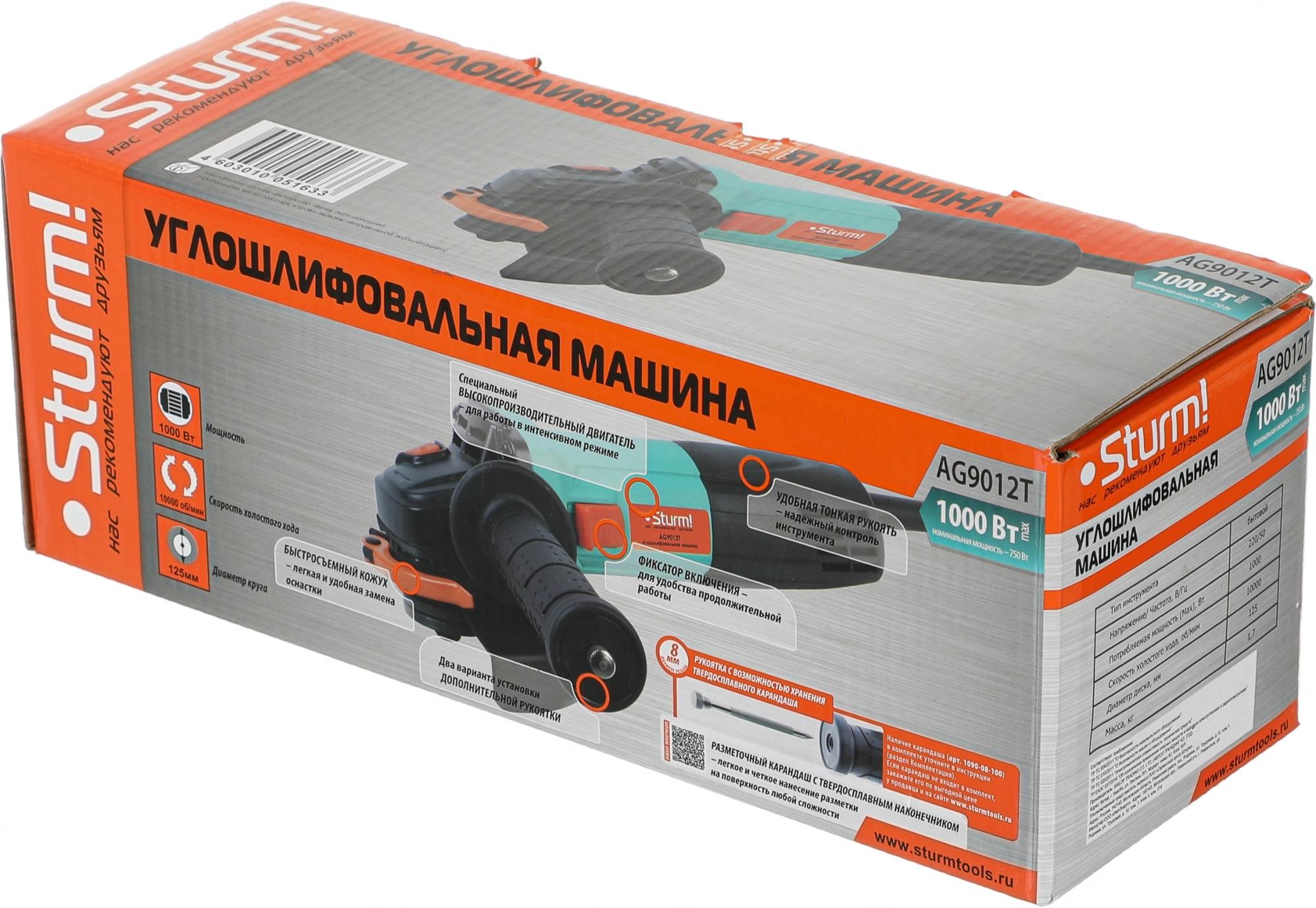 Углошлифовальная машина Sturm! AG9012T 1000Вт 11000об/мин рез.шпин.:M14 d=125мм
