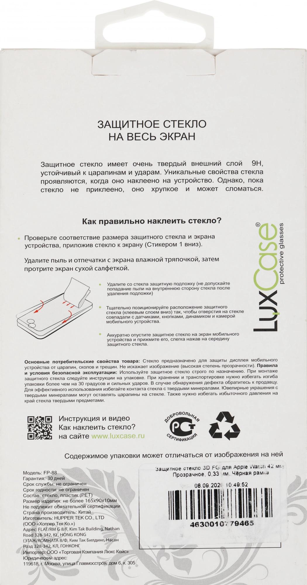 42mm"Пеимущества: - полностью повторяет изгибы экрана, что снижает попадание пыли под стекло- клеевой слой по всей поверхности-качественное олеофобное покрытие для предотвращения появления жирных следов и разводов."