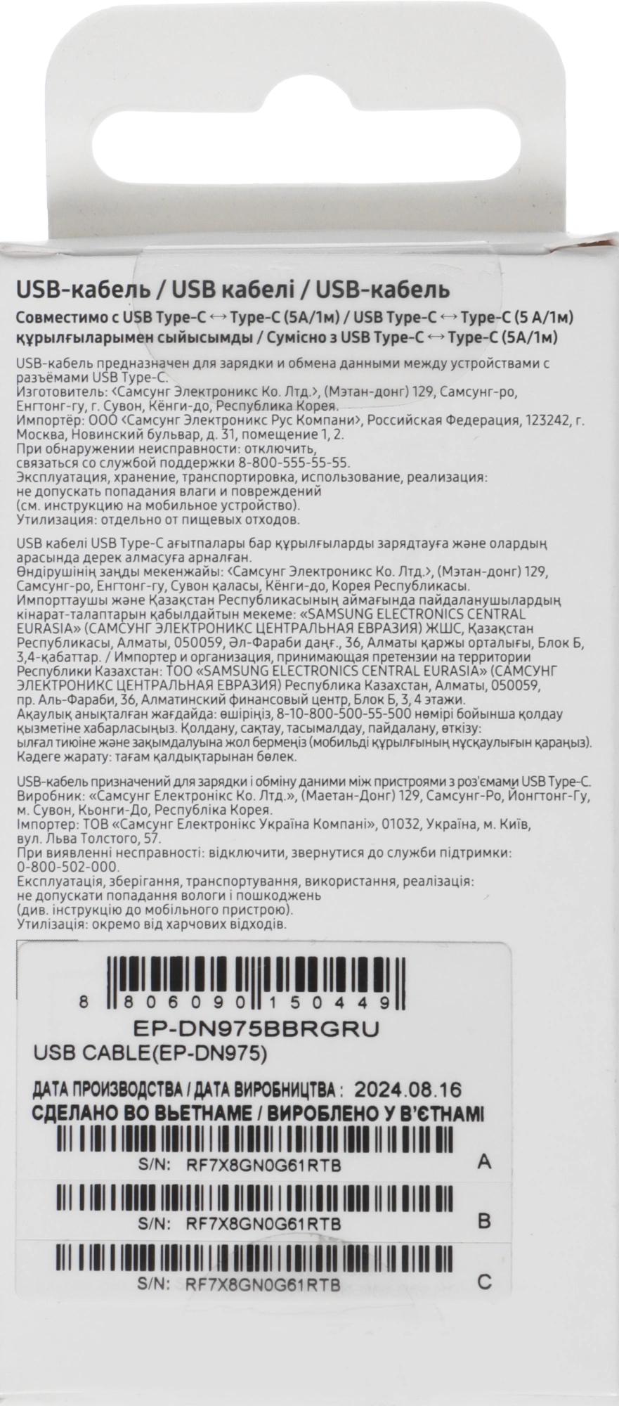 Кабель для передачи данных/зарядки для мобильных устройств с разъёмами USB Type-C. Поддерживаемая мощность до 100W (20V/5A), поддержка Power Delivery. Длина 1 м